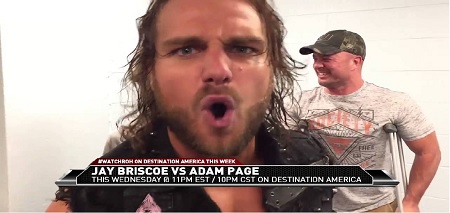 Briscoe can’t believe the kickout as Whitmer is celebrating on commentary. Briscoe standing over him, screaming “Come on Boy”. Page gets to his knees and then spits in Briscoe’s face. Briscoe loses it and starts wailing on him after that. Briscoe takes his head off with a clothesline, while Whitmer and Corino are really going at in on commentary after Whitmer was making cracks about Corino’s family. Whitmer hits the Jay Driller for the pin.