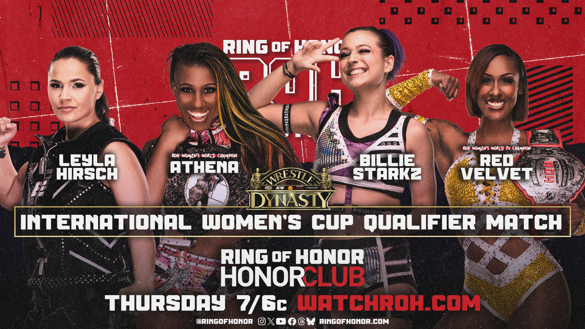 ROH Women’s Champion Athena, Women’s TV Champion Red Velvet, Billie Starkz and Leyla Hirsch will battle in a four-way with the winner advancing to a four-way on January 5th in the Tokyo Dome against representatives from AEW, CMLL and Stardom.