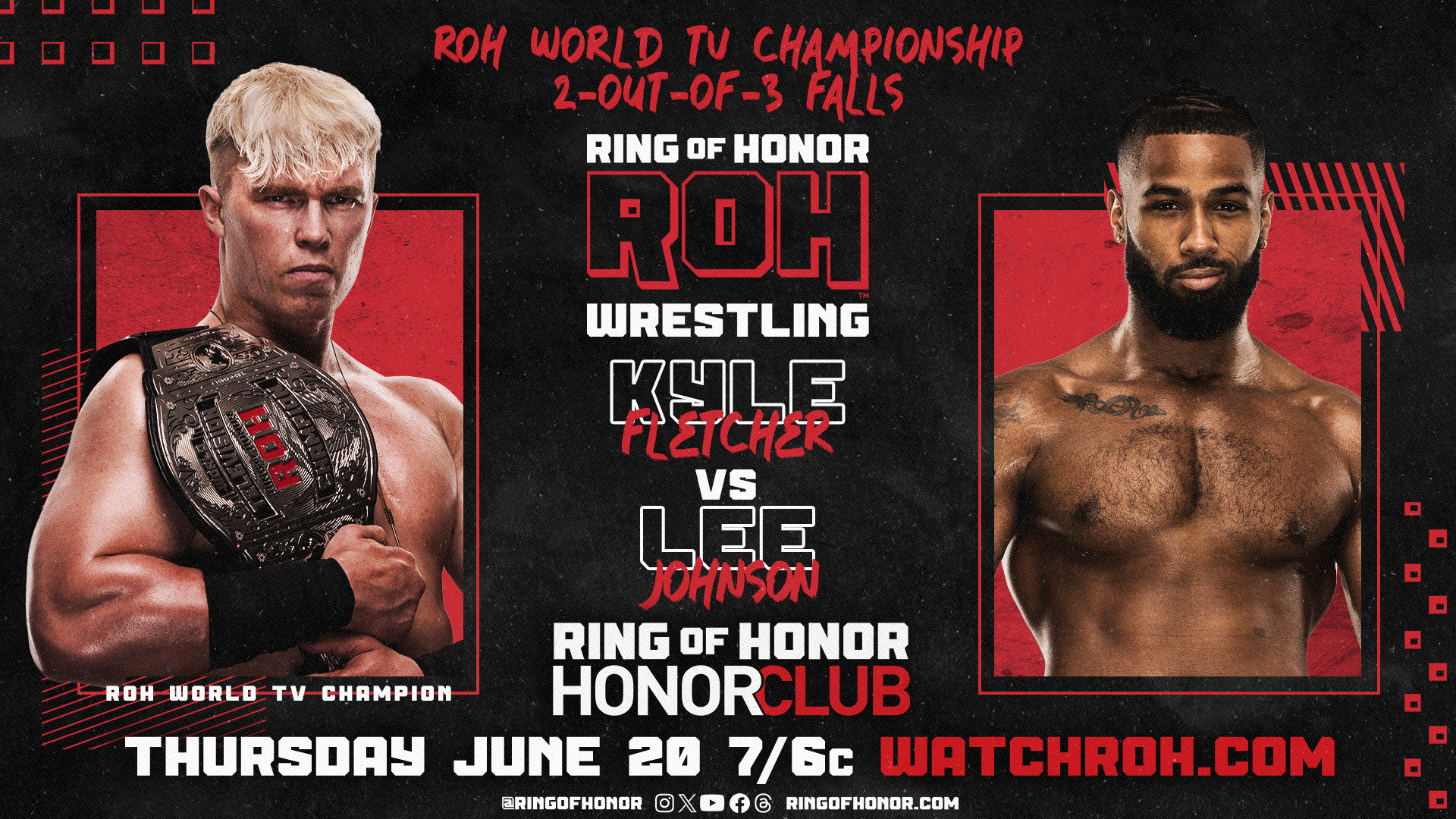 Ring of Honor TV Champion Kyle Fletcher will defend his belt against Lee Johnson in a best-of-three-falls match on tonight’s ROH on HonorClub which will feature two title bouts.