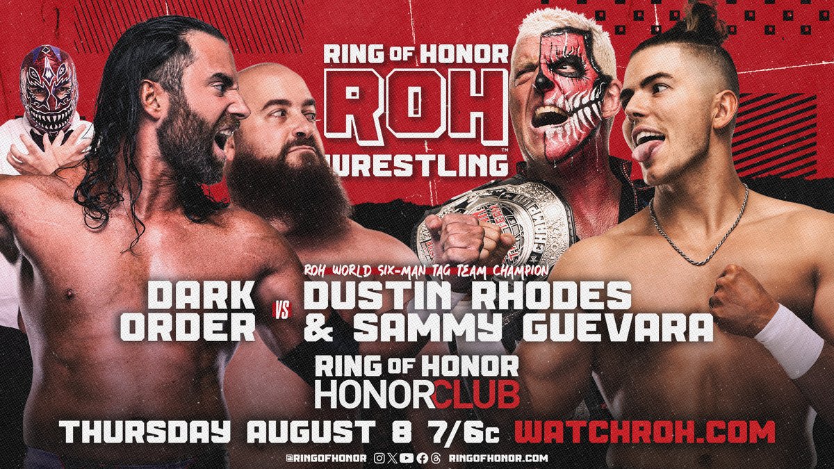Last week, Guevara made a surprise appearance on ROH, saving Rhodes from a beatdown at the hands of a very cranky Dark Order. The Order, Uno specifically, feel like Rhodes is taking up a spot in ROH that they deserve. His winning the 6-Man Titles with the Von Erichs stuck in Uno’s craw and had Guevera not interfered last week, they would have taken out Rhodes. Guevara is the wild card here as he seems to have turned over a new leaf, but is still Sammy Guevera, so can he be trusted?