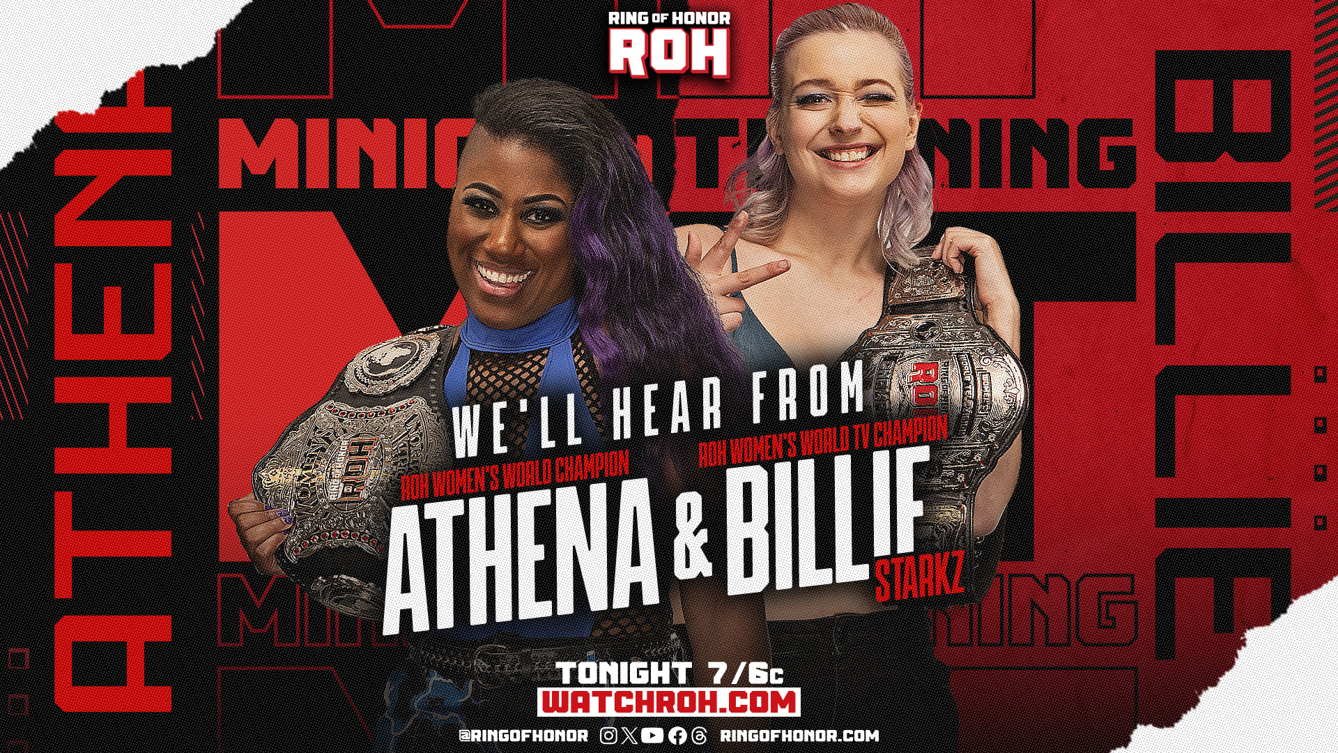 ROH Women’s World Champion Athena and ROH Women’s TV Champion Billie Starkz will be on hand to share some thoughts ahead of Athena’s title defense against Queen Aminata and Starkz’s defense against Red Velvet.