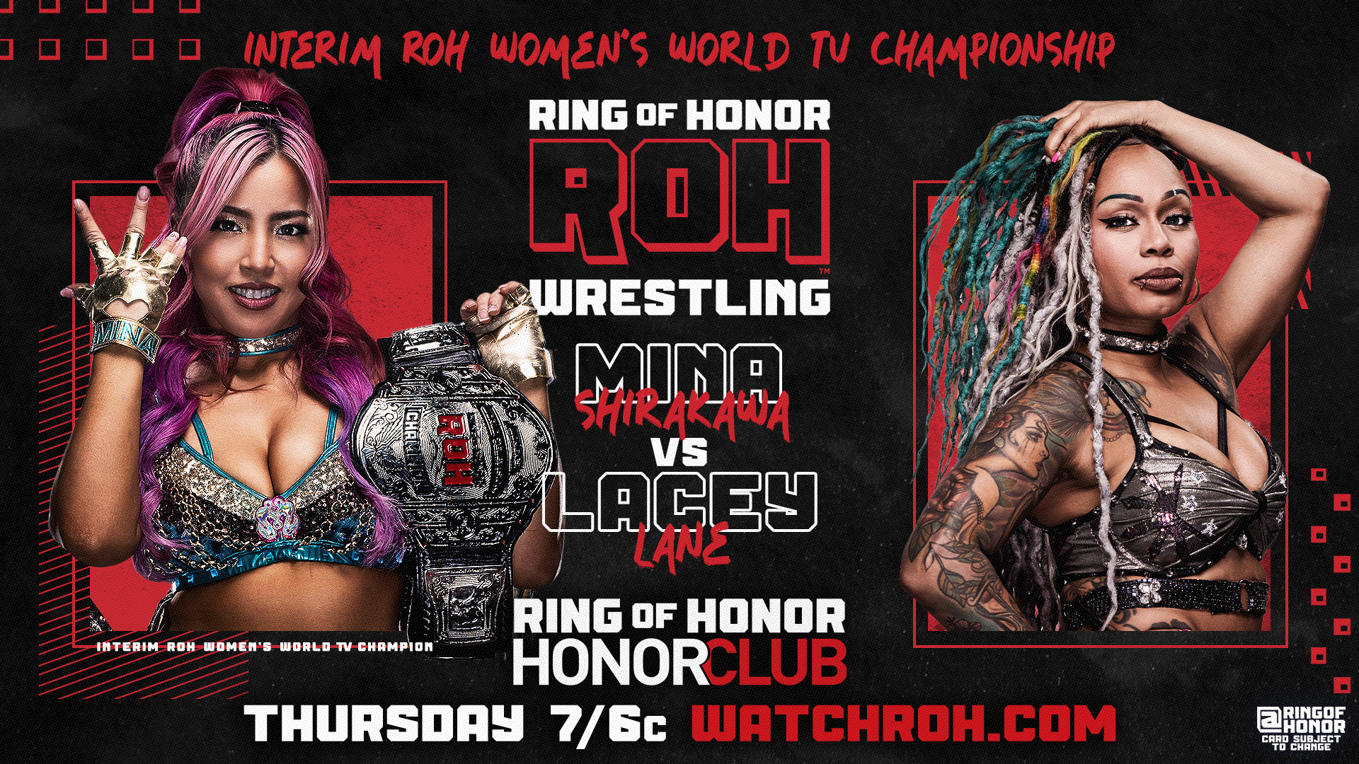 After unsuccessfully unseating AEW Women’s World Champion Kris Statlander on Wednesday’s AEW Dynamite, interim ROH Women’s TV Champion Mina Shirakawa will defend her title against the debuting Lacey Lane, formerly Kayden Carter in WWE.