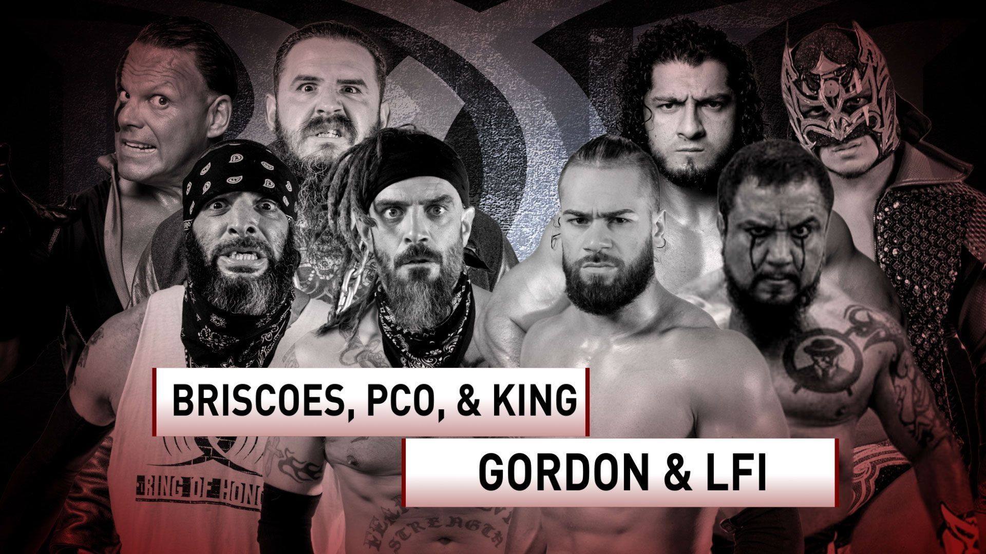 King tagged in and chucked Gordon out of the ring, but LFI again tossed him right back in and taunted. Jay Briscoe tagged back in and ran into a flying Gordon. Gordon tried to extend his arm for a tag, but all three members of LFI jumped off the apron instead. Mark Briscoe came in and hit the Redneck Boogie on Gordon and tried to pin him, but LFI came in and all hell broke loose.