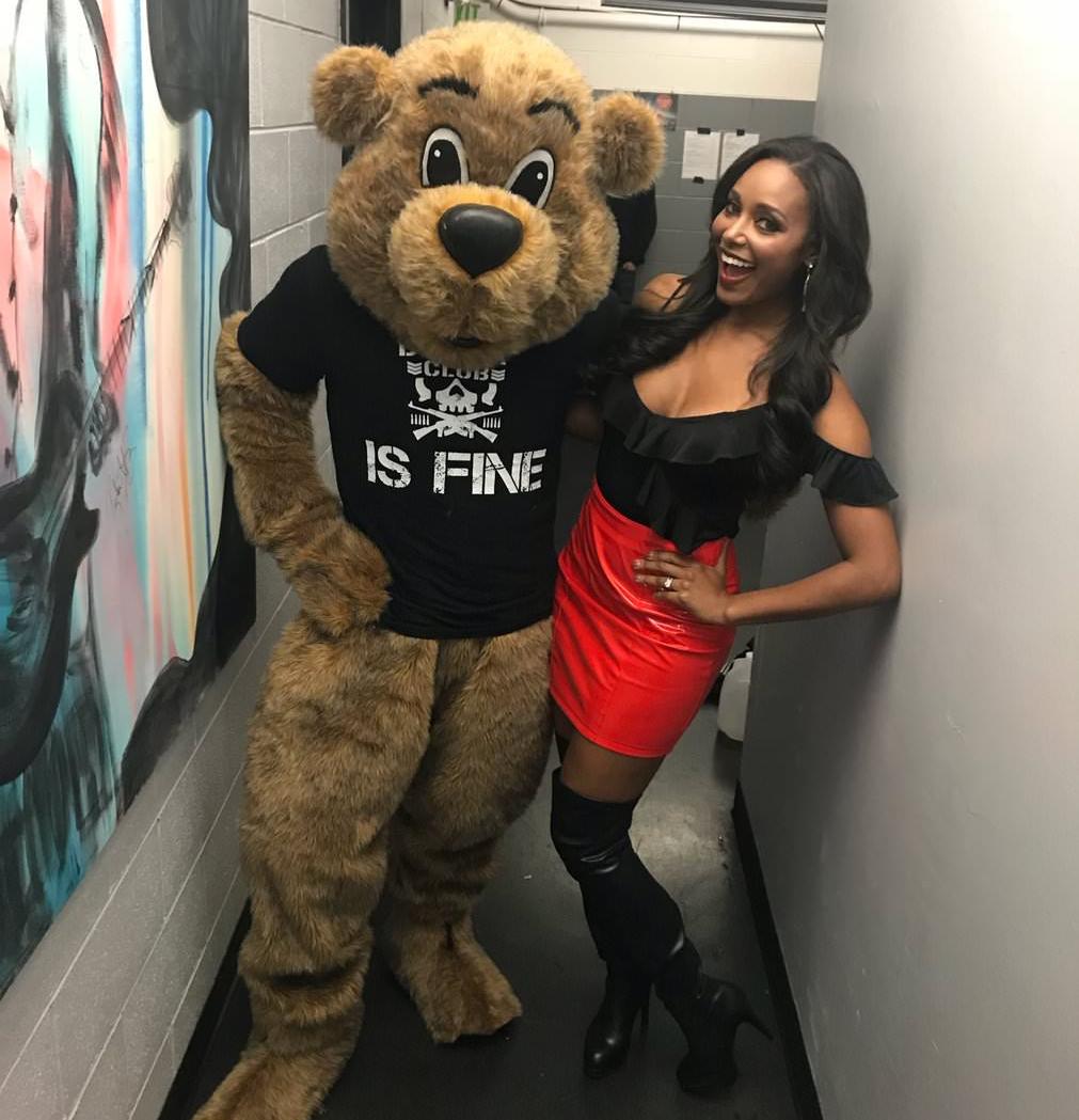 Brandi Rhodes came out with “Bury the Bear,” whose shirt said that the Bullet Club is fine despite their recent in-fighting. Bury the Bear did a dive from the top rope to everyone on the outside at one point.