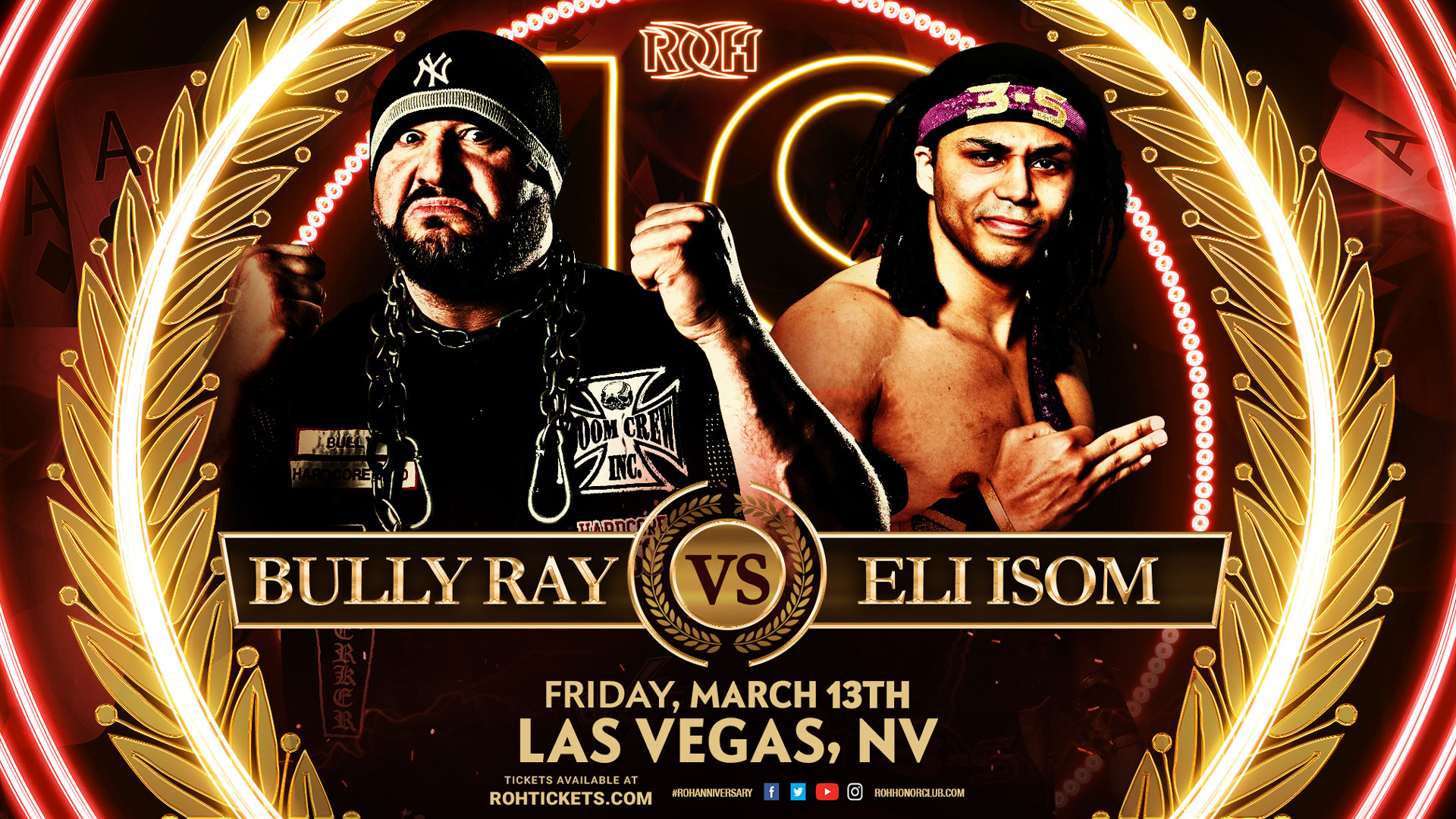 ROH hyped that Bully Ray “has said that he’ll leave ROH for good if anyone can defeat him” and Isom is determined to rid the company of him.