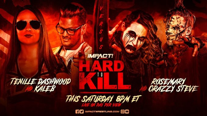 The match was set up on tonight’s Impact when Rosemary defeated Dashwood in a singles match. Kaleb tried to interfere on Dashwood’s behalf, but Crazzy Steve ran out for the save. Rosemary and Steve reunited after the match.
