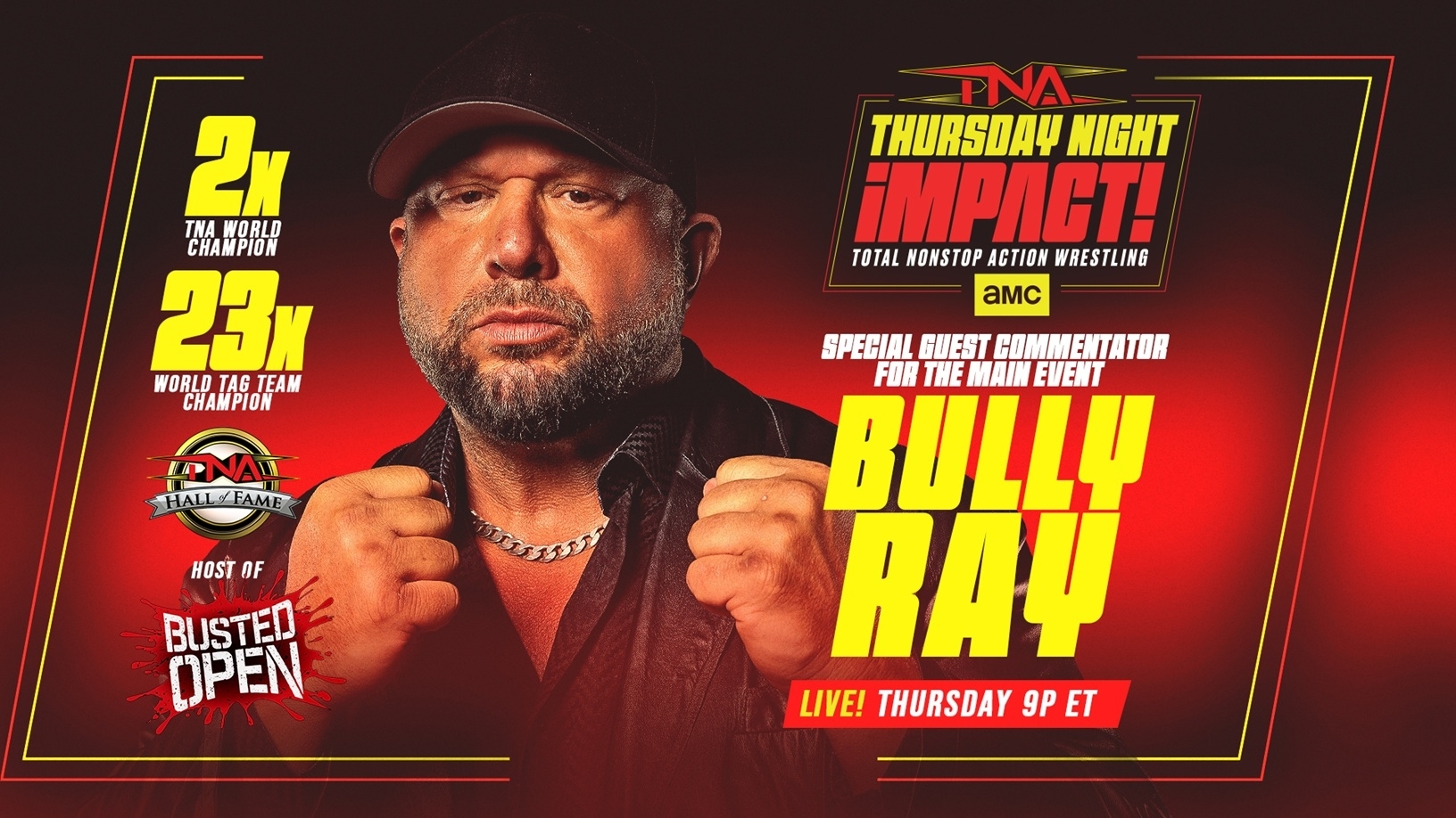 “For the first time since the emotional final showdown between The Hardys and Team 3D at Bound For Glory, Bully Ray is back in TNA Wrestling,” the promotion announced. “The two-time TNA World Champion, 23-time World Tag Team Champion, TNA Hall of Famer and host of Busted Open will be the Special Guest Commentator for the main event of the Thursday Night iMPACT! on AMC premiere.”