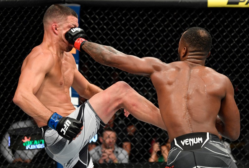 While Edwards dominated for the majority of the fight, Diaz landed a right hand slap and a left hand in the fifth round that had Edwards on wobbly legs. Diaz pursued and continued to land punches, but Edwards was able to defend and survive for the win.