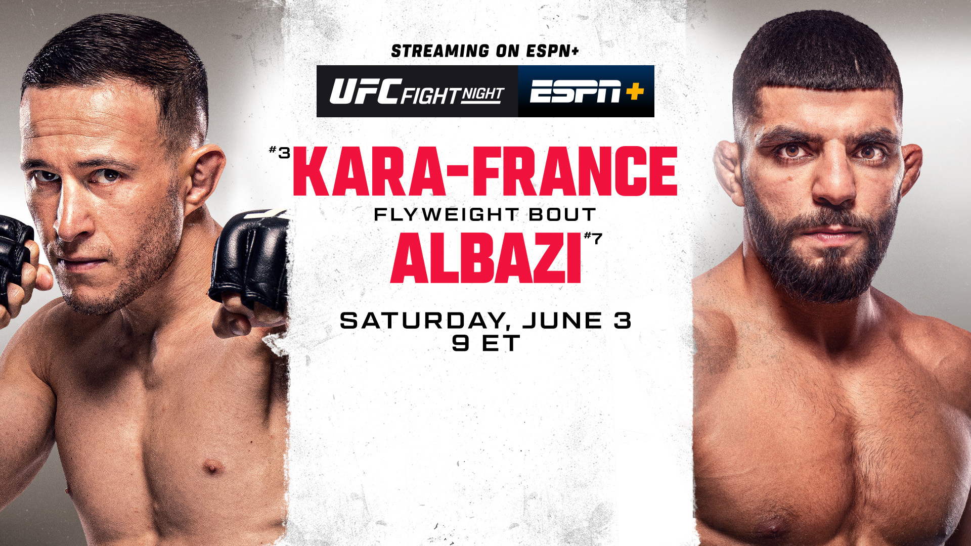 Kai Kara-France vs. Amir Albazi headlines in a five-round clash of top ten flyweights — the first non-title flyweight bout to headline a UFC card since 2017. Kara-France is fighting for the first time since July as he looks to get back into the win column after suffering a loss to Brendan Moreno in an interim title fight. Albazi looks to remain undefeated in the UFC and extend his five-fight win streak.