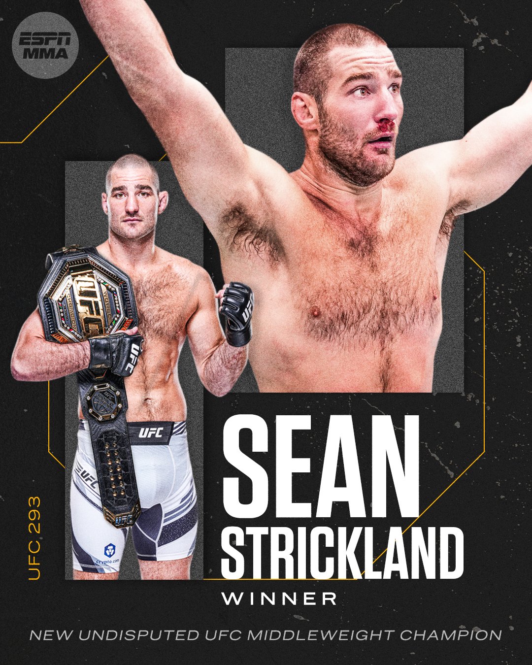 🇺🇸🏆 @SStricklandMMA is the NEW middleweight champion of the world! #UFC293 pic.twitter.com/j7A1yuO4tZ