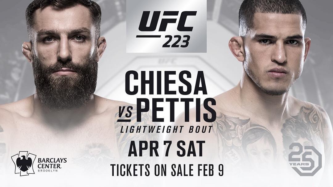 On Twitter, Chiesa alluded to a state commission decision not allowing him to fight and that he’d like to fight Pettis on June 9th.