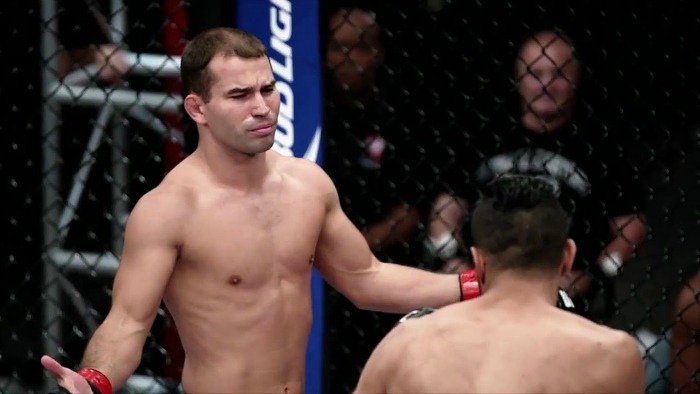 There are under ten minutes left so this isn’t getting out of the first round. McGregor reminds Lobov to be “flowey.” Dana White runs down the rules. Herb Dean signals both men and the fight is underway. Erosa is in the blue and Lobov the gray trunks. Lobov is following his usual MO – he’s head hunting and pressuring his opponent. Lobov rocks him at 57 seconds with a big left, hits him with another huge shot when he tries to get up, and Herb Dean is there to wave it off immediately. McGregor is so happy he rips his pants jumping over the fence!