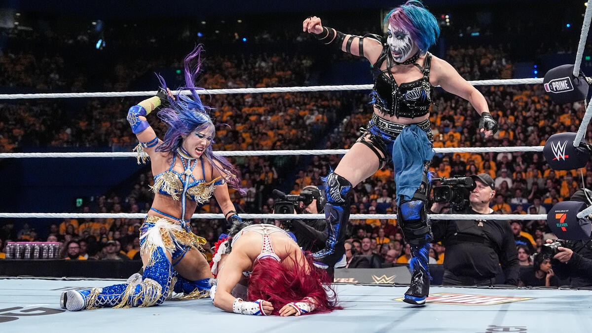 Sane and Asuka did end up laying out Ripley and SKY after the match, including Sane striking Ripley with a kendo stick and Asuka giving Ripley a DDT onto the announce table.