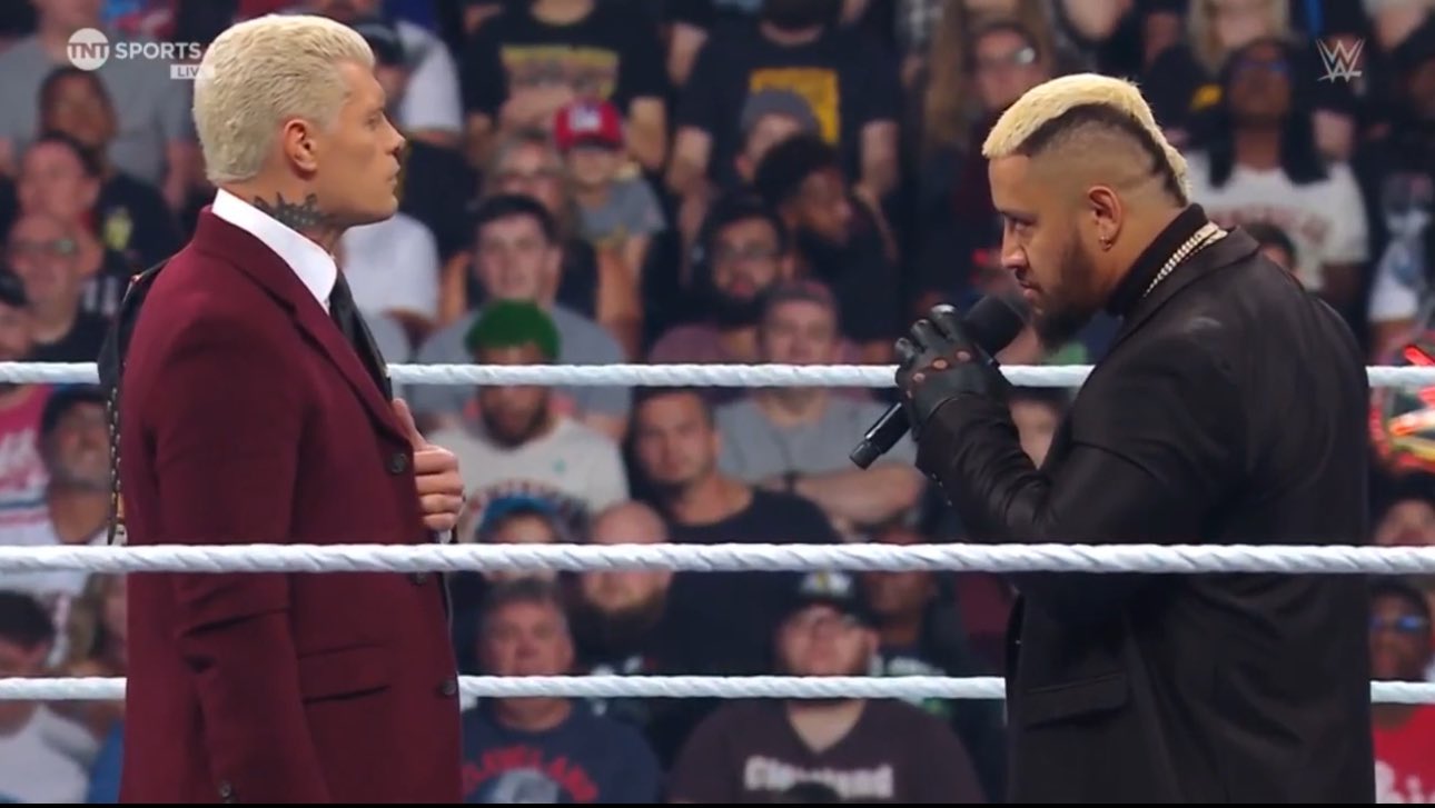 The opening of Friday’s SmackDown saw WWE Champion Cody Rhodes and challenger Solo Sikoa meeting face-to-face in the ring. When Jacob Fatu, Tama Tonga, and Tonga Loa came in through the crowd, Sikoa issued the Bloodline Rules challenge. Rhodes said it wouldn’t be the smartest idea, but he accepted the new stipulation for Saturday’s match.