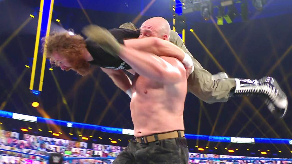 At the end of tonight’s SmackDown, Strowman made his return to WWE TV and laid out AJ Styles, Sami Zayn, and Cesaro. Daniel Bryan, Big E, Shinsuke Nakamura, Otis & Sheamus had defeated Styles, Zayn, Cesaro, The Miz & John Morrison in the main event of tonight’s show.