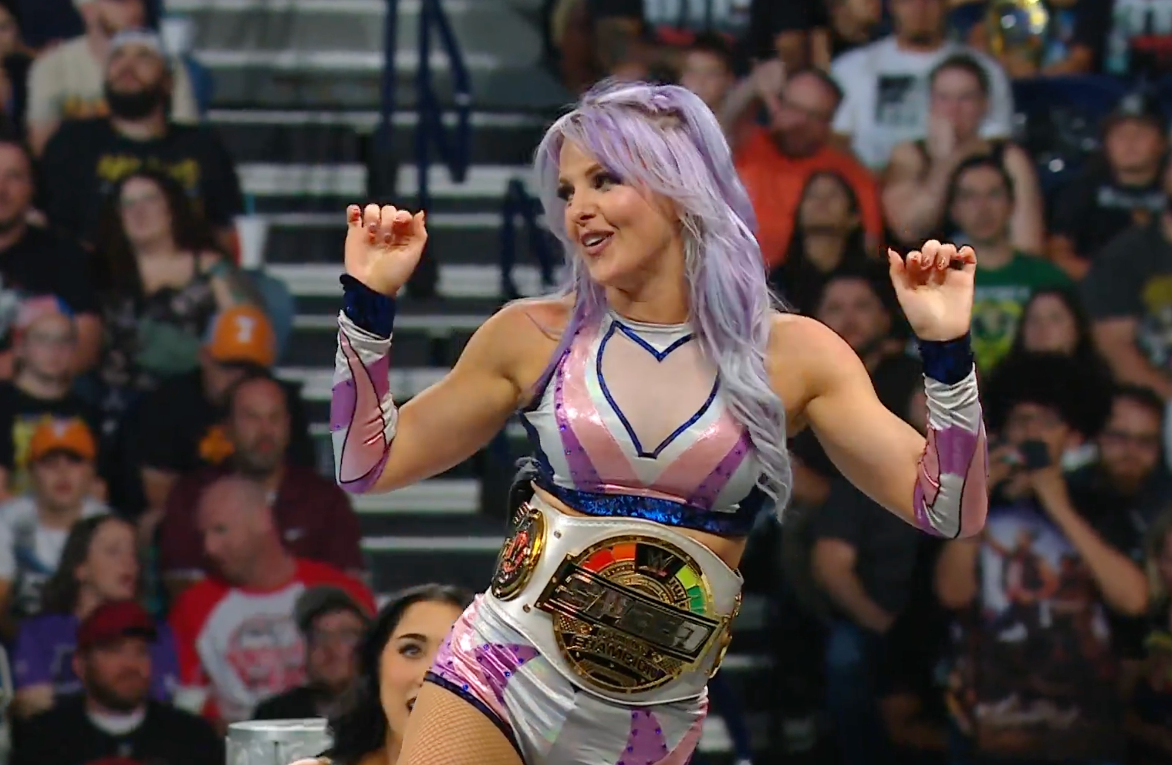 Title matches on Speed have a five-minute time limit, an increase from the three-minute limit for non-title bouts. LeRae defeated Sky with 1:12 left on the clock. After the win, LeRae celebrated with her tag team partner Indi Hartwell.