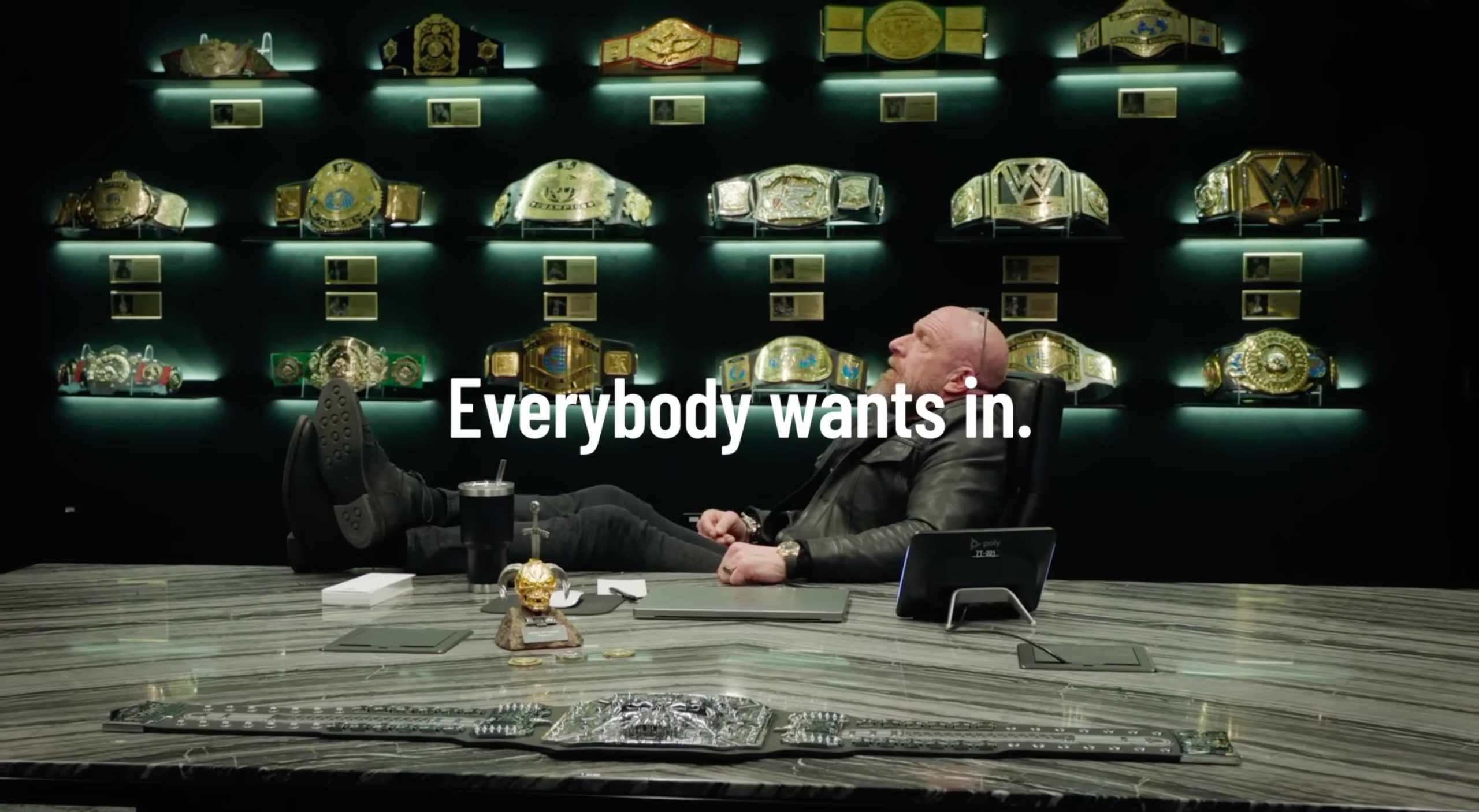 “WrestleMania Vegas. Everybody wants in,” the promo video says. “Also, please stop emailing Paul. And texting him.”