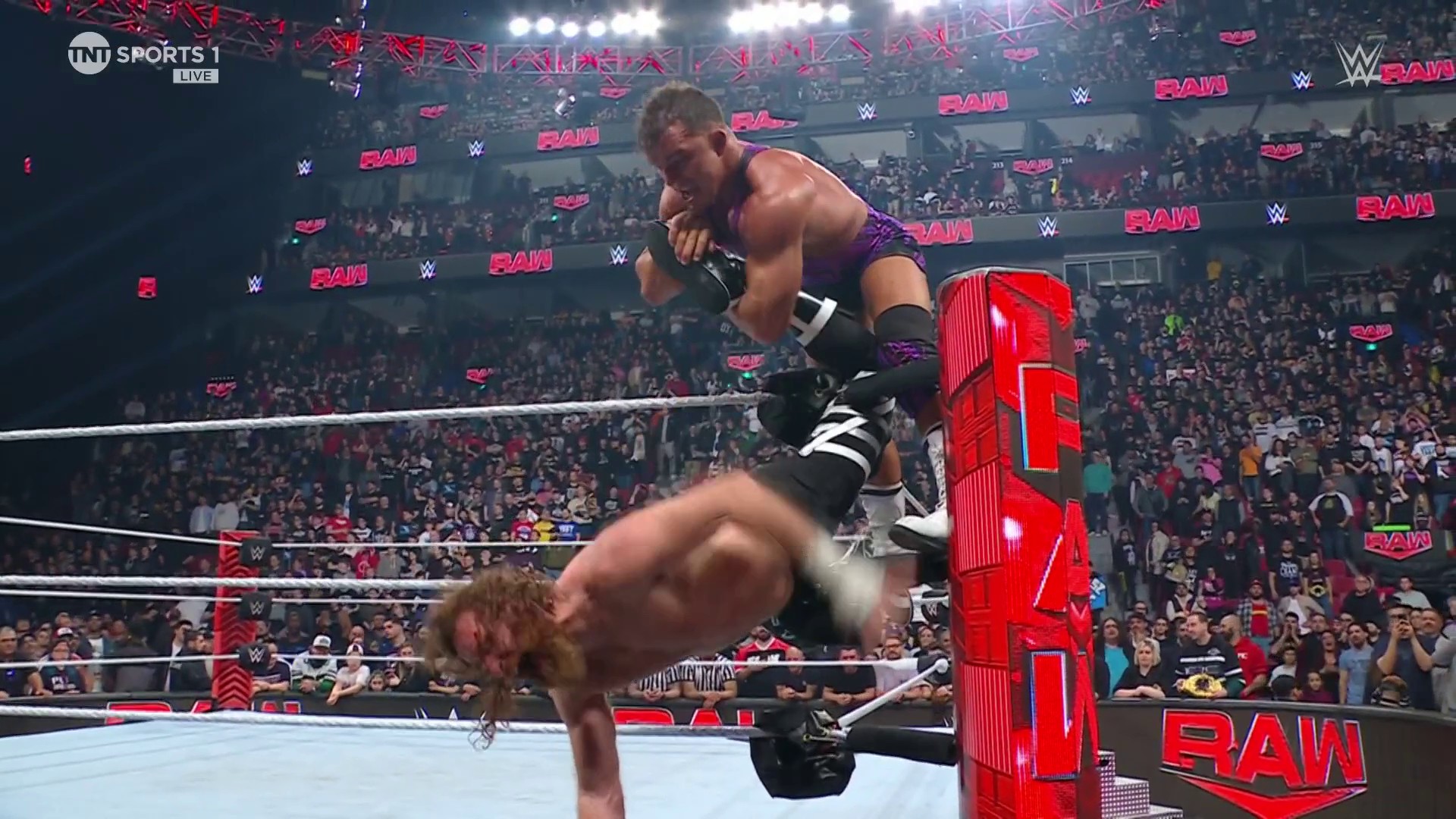 After Zayn defeated Gable in the main event of WWE Raw, Gable raised Zayn’s hand and left the ring as Zayn celebrated his win in his home city of Montreal. As he was hugging his wife at ringside, however, Gable took him down from behind with a German suplex and continued to attack Zayn. Raw came to a close as Gable had Zayn’s leg wrapped up in the turnbuckle, clinching in an ankle lock.