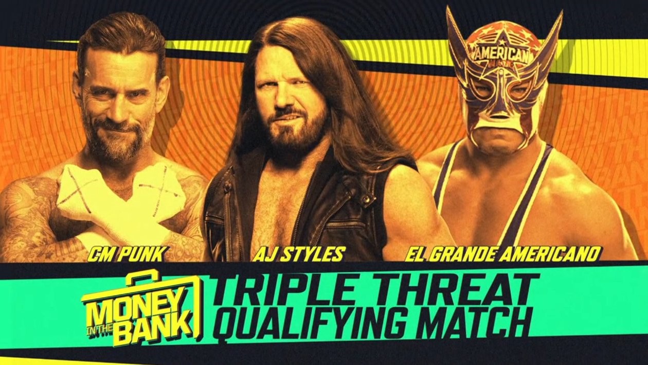 - Men’s Money in the Bank qualifying match: CM Punk vs. AJ Styles vs. El Grande Americano