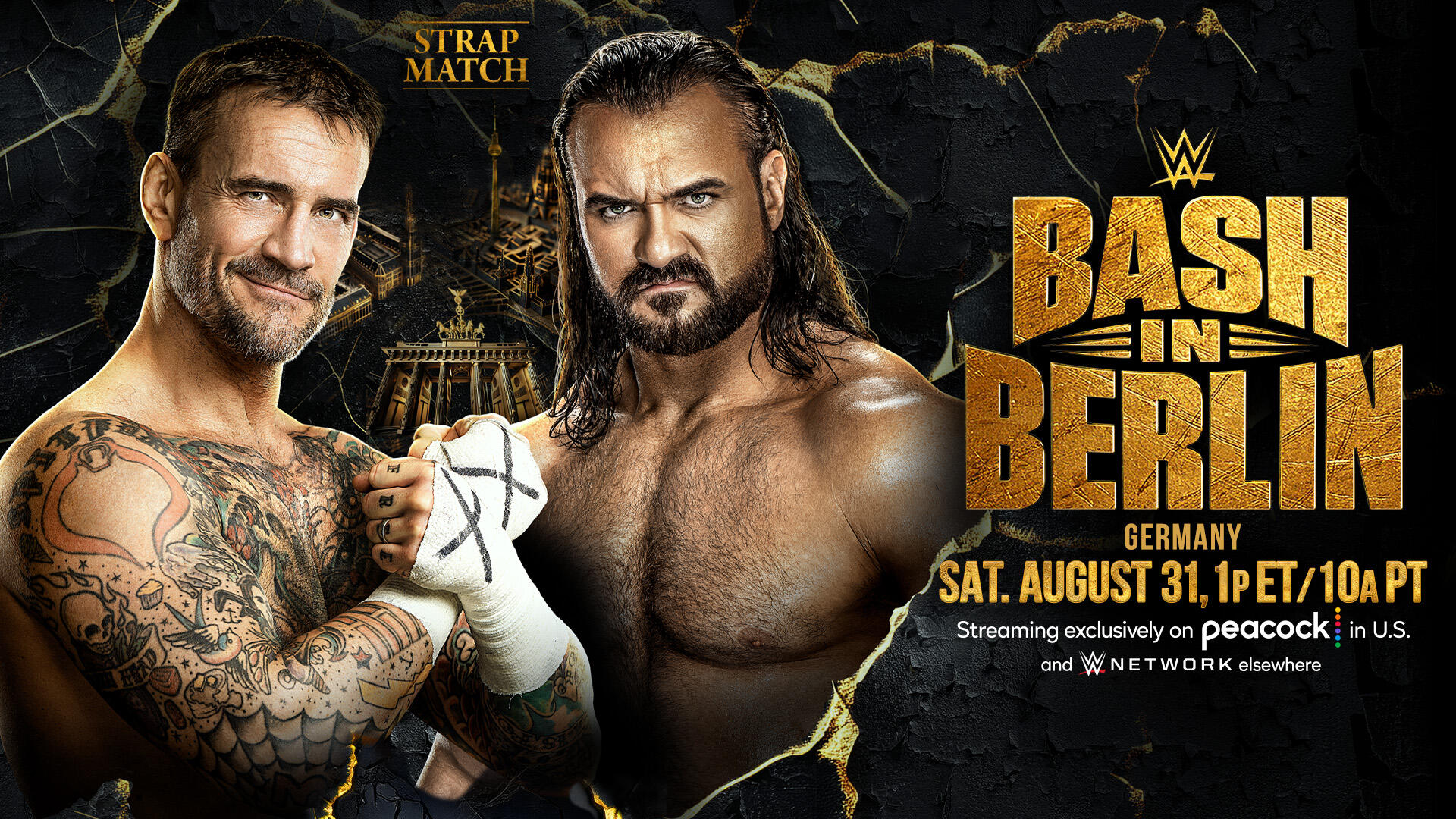 As officially announced during Monday’s WWE Raw, CM Punk will take on Drew McIntyre at Bash in Berlin in a strap match.
