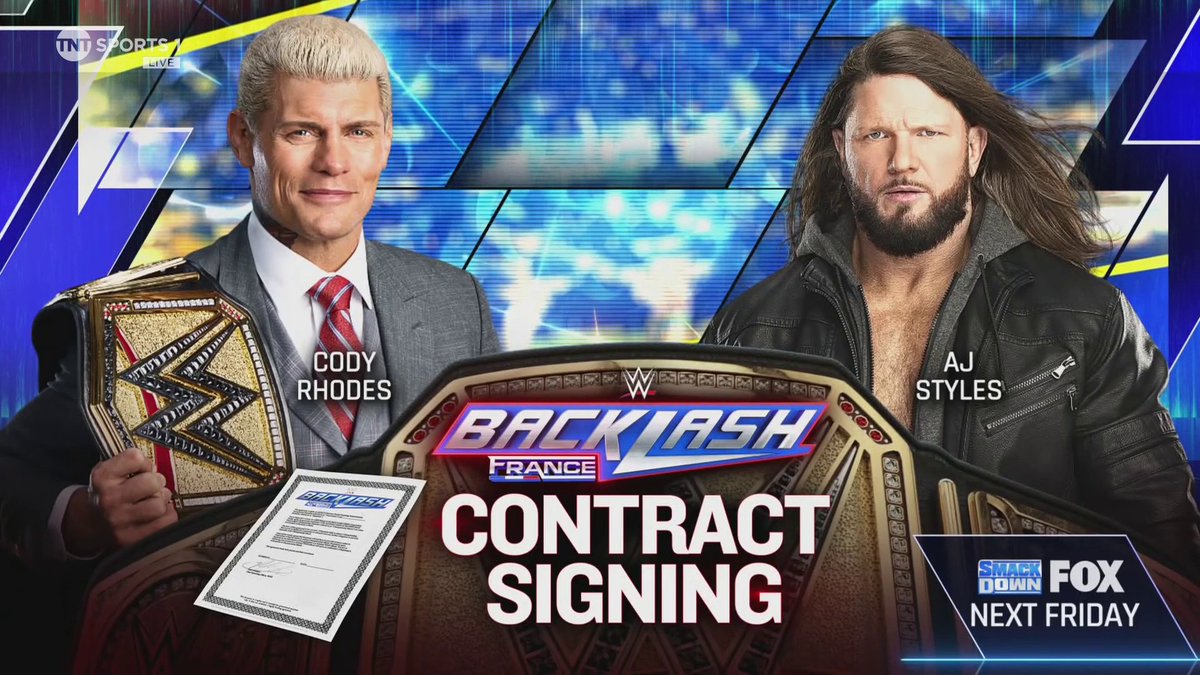 - Cody Rhodes & AJ Styles contract signing for Backlash Undisputed WWE Universal Championship match