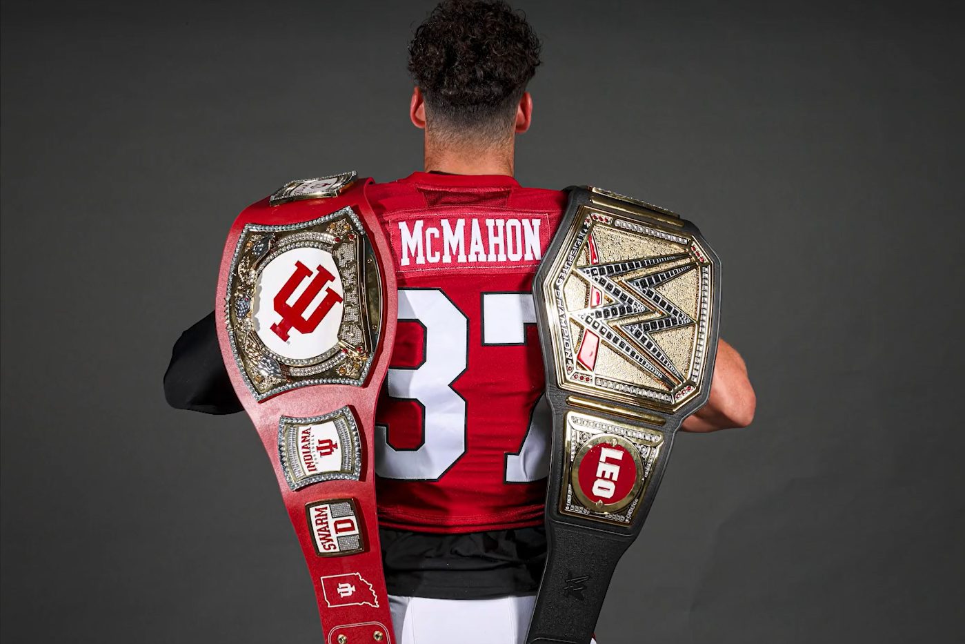 McMahon was shown on camera at WWE Fastlane with his Indiana teammates earlier this month holding the custom Indiana University “turnover belt” given to his defensive teammates when forcing a turnover.