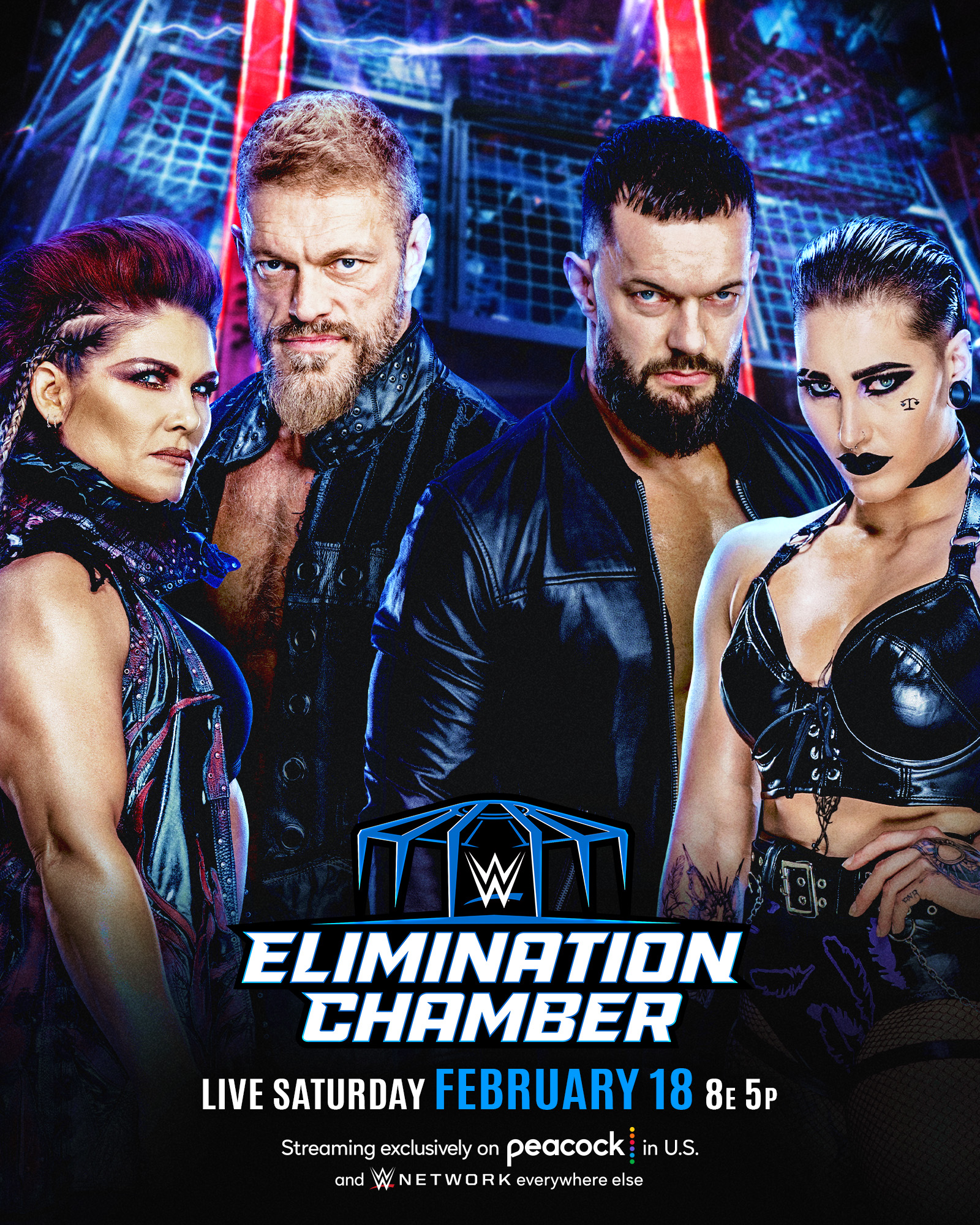 WWE Elimination Chamber, Saturday, February 18, 8 p.m. Eastern time on Peacock & WWE Network —