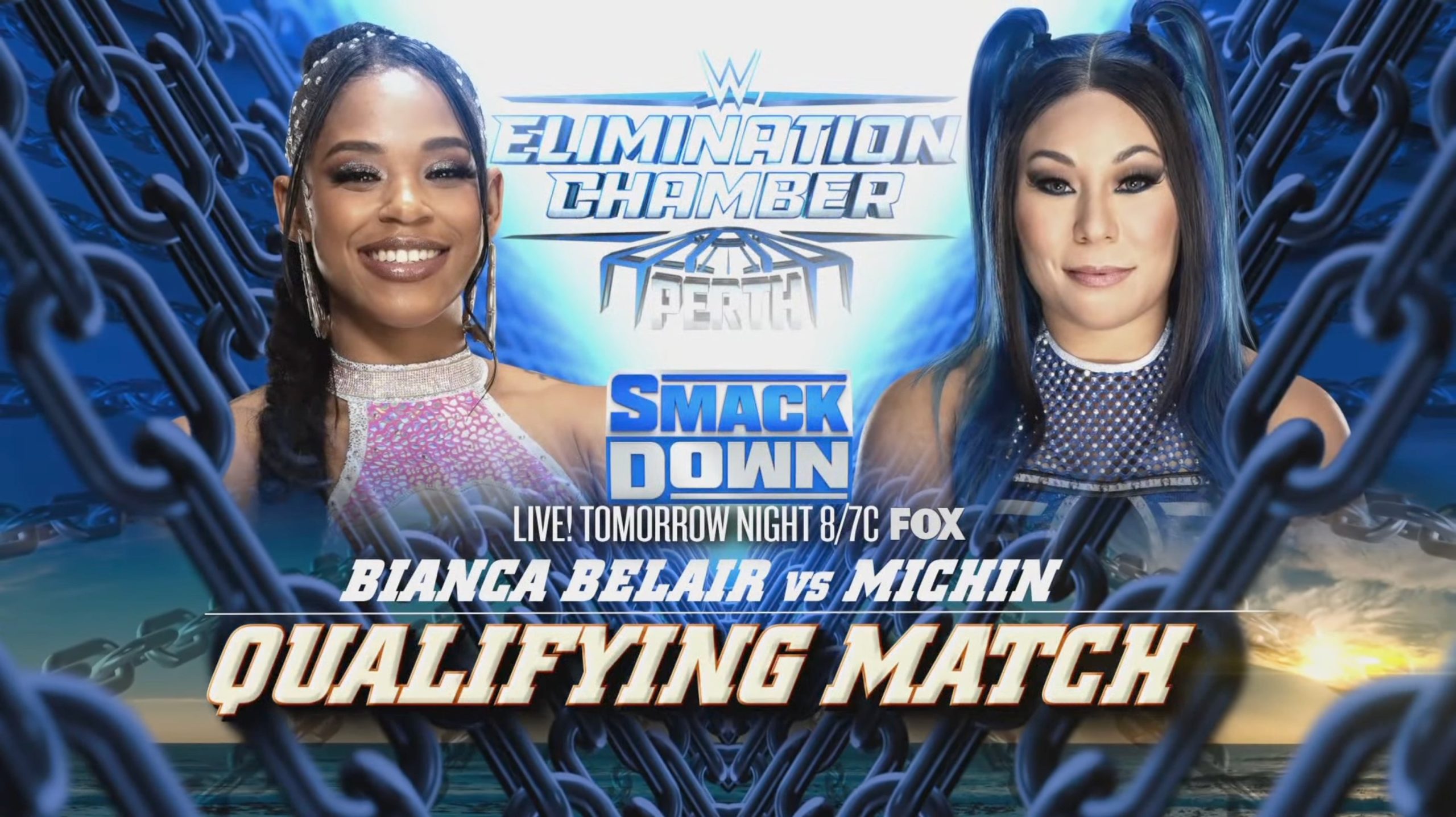 WWE revealed during Thursday’s WrestleMania Kickoff event that Bianca Belair will face Michin on SmackDown in an Elimination Chamber qualifier. The Elimination Chamber event takes place on Saturday, February 24, with a women’s Chamber match announced for the show. The Chamber match winner will challenge the Women’s World Champion at WrestleMania 40.