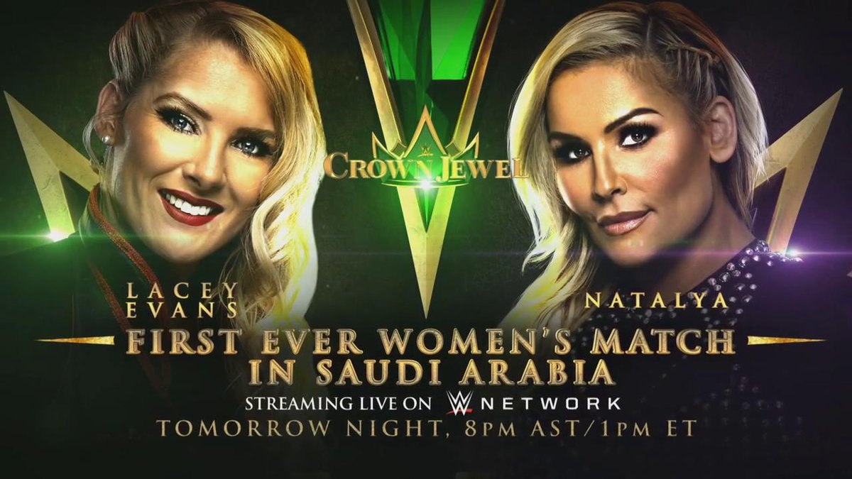 At a media event today, WWE announced that Natalya vs. Lacey Evans will take place at Crown Jewel this Thursday (October 31). The show is being held at King Fahd International Stadium in Riyadh and will air live on the WWE Network. The pre-show begins at noon Eastern time, with the main card starting an hour later.