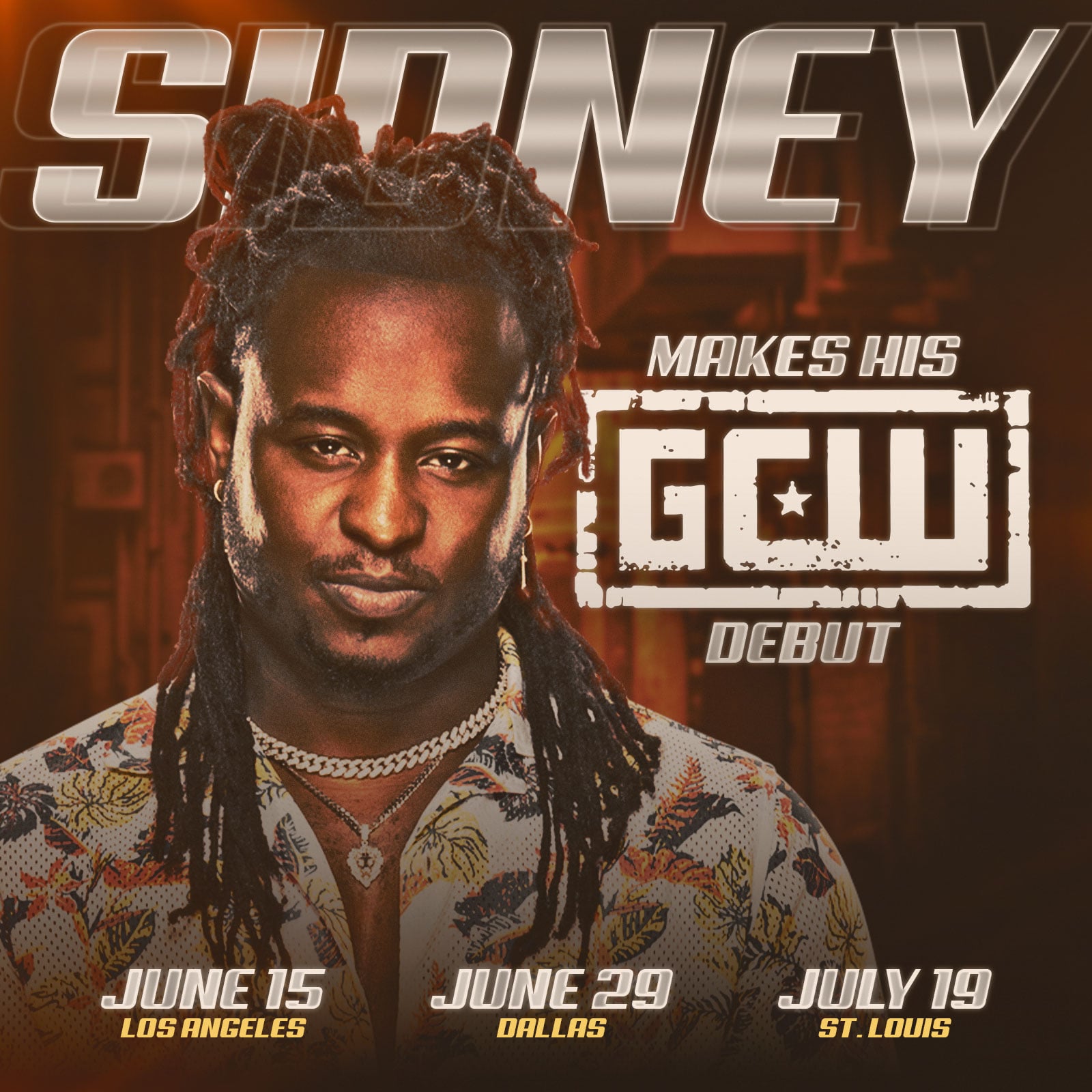Wrestling under the name Sidney Akeem, he has been announced for GCW shows in Los Angeles on June 15, Dallas on June 29, and St. Louis on July 19.