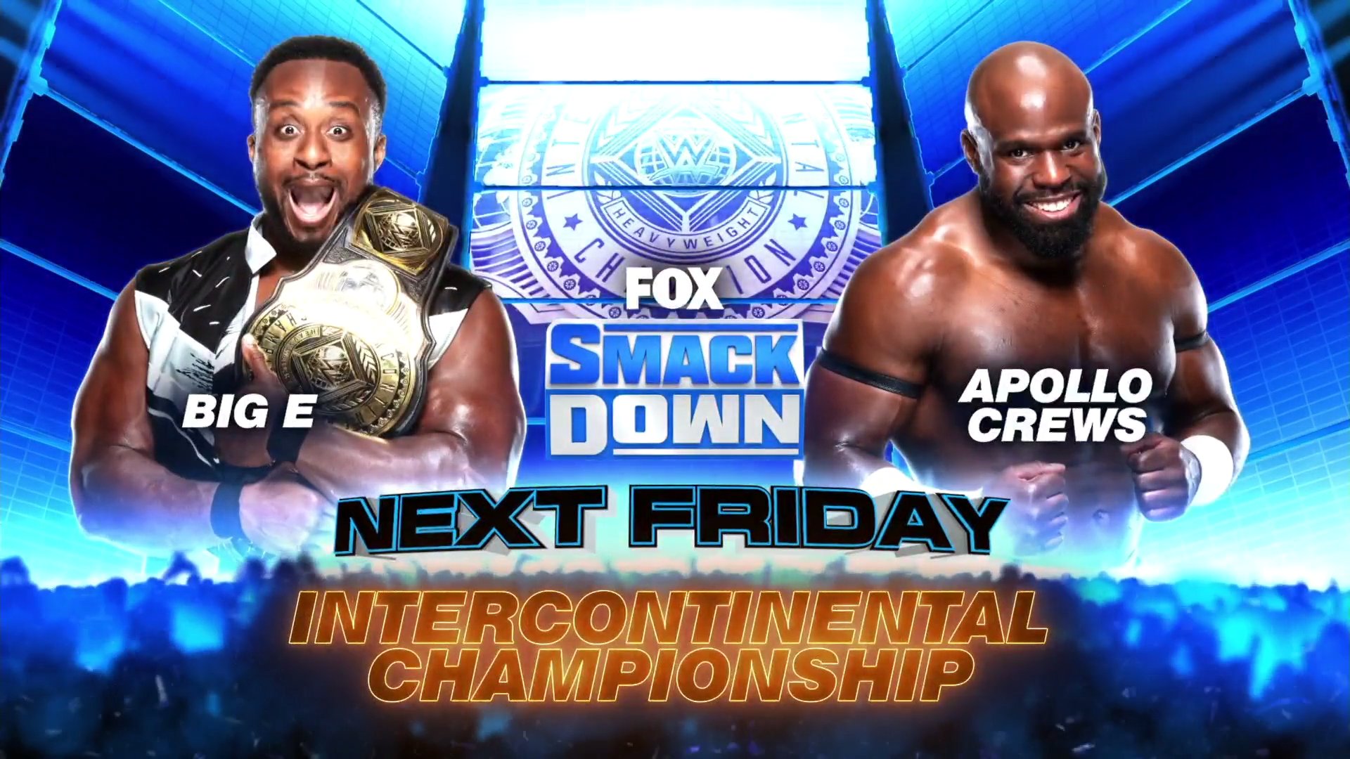 Big E will again defend his Intercontinental title against Apollo Crews on SmackDown next Friday. The episode will also feature Bayley and Bianca Belair competing in an obstacle course challenge.