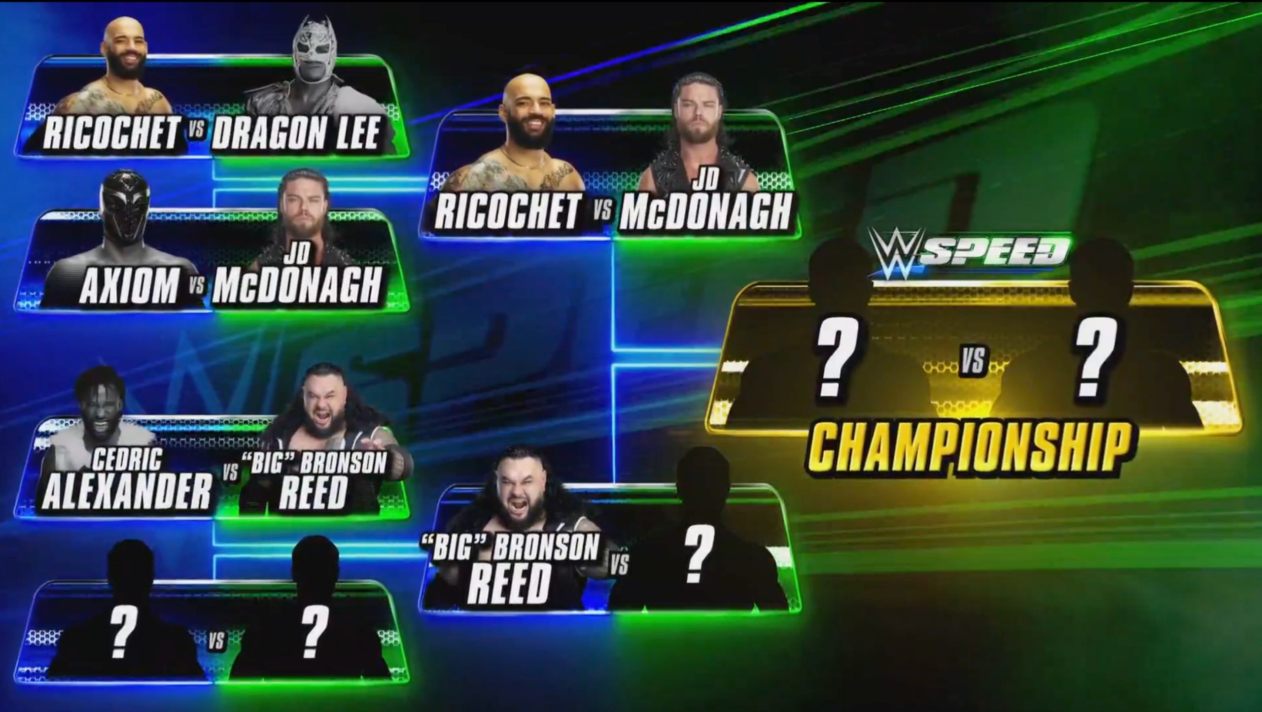 Last week, Ricochet defeated Dragon Lee and Reed defeated Cedric Alexander in the first two Speed matches.