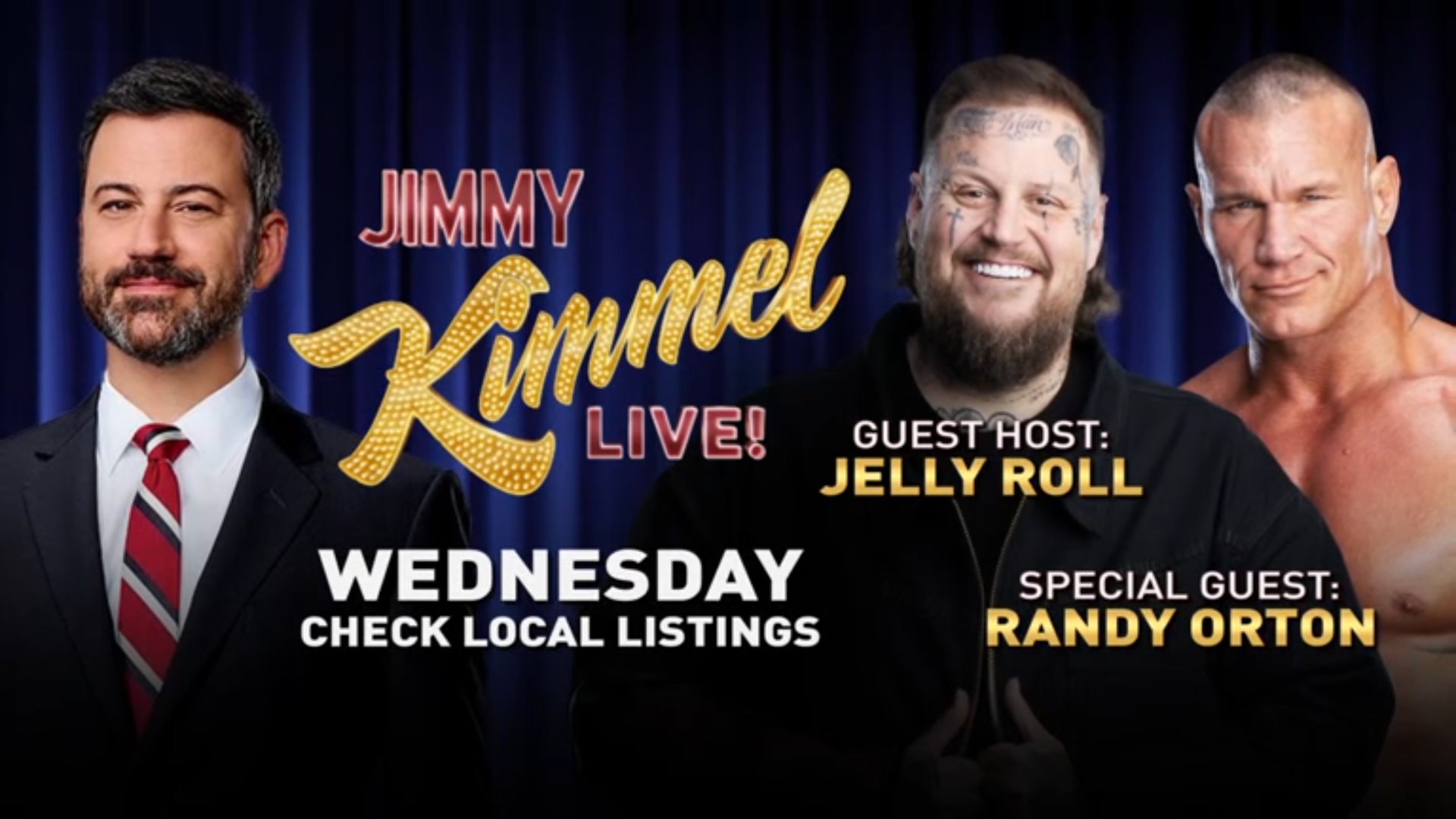 WWE announced during Monday’s Raw that music star Jelly Roll will be the guest host on this Wednesday, July 16 episode of Jimmy Kimmel Live, with Orton appearing as a guest on the program.