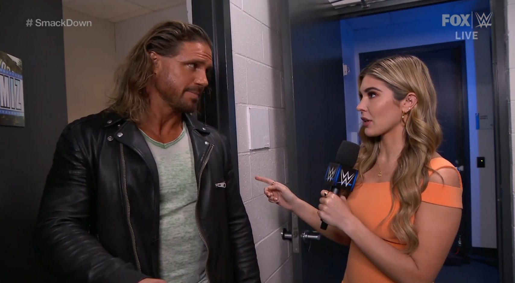 On tonight’s episode of SmackDown, The Miz attacked Kofi Kingston after Kingston picked up a win over Miz. Following a commercial break, Cathy Kelley knocked on the Miz’s door backstage to get an interview explaining why he attacked Kingston. John Morrison opened the door instead and told Kayla that The Miz didn’t have any comments.