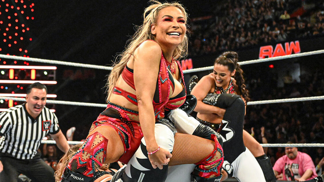Appearing as the surprise mystery partner alongside Zelina Vega & Lyra Valkyria in a trios match on Monday’s Raw, Natalya secured the win for her side against Pure Fusion Collective’s Zoey Stark, Sonya Deville, and Shayna Baszler, tapping out Stark with a Sharpshooter.