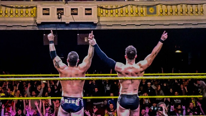 This was by far the best match and the one the crowd reacted to the most. AA come off as stars and were so hot with the crowd throughout the entire match. The match itself was almost like a repeat of the Takeover match, with the same spots being repeated, like Dash and Dawson holding onto each other while they get German Suplexed. It was still very fun.