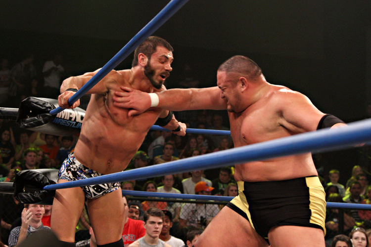 Couldn’t even hear what Sampson tried singing he had so much heat. Mid match a “You like Nickelback” chant broke out which was hilarious. Jose won with his full nelson slam.