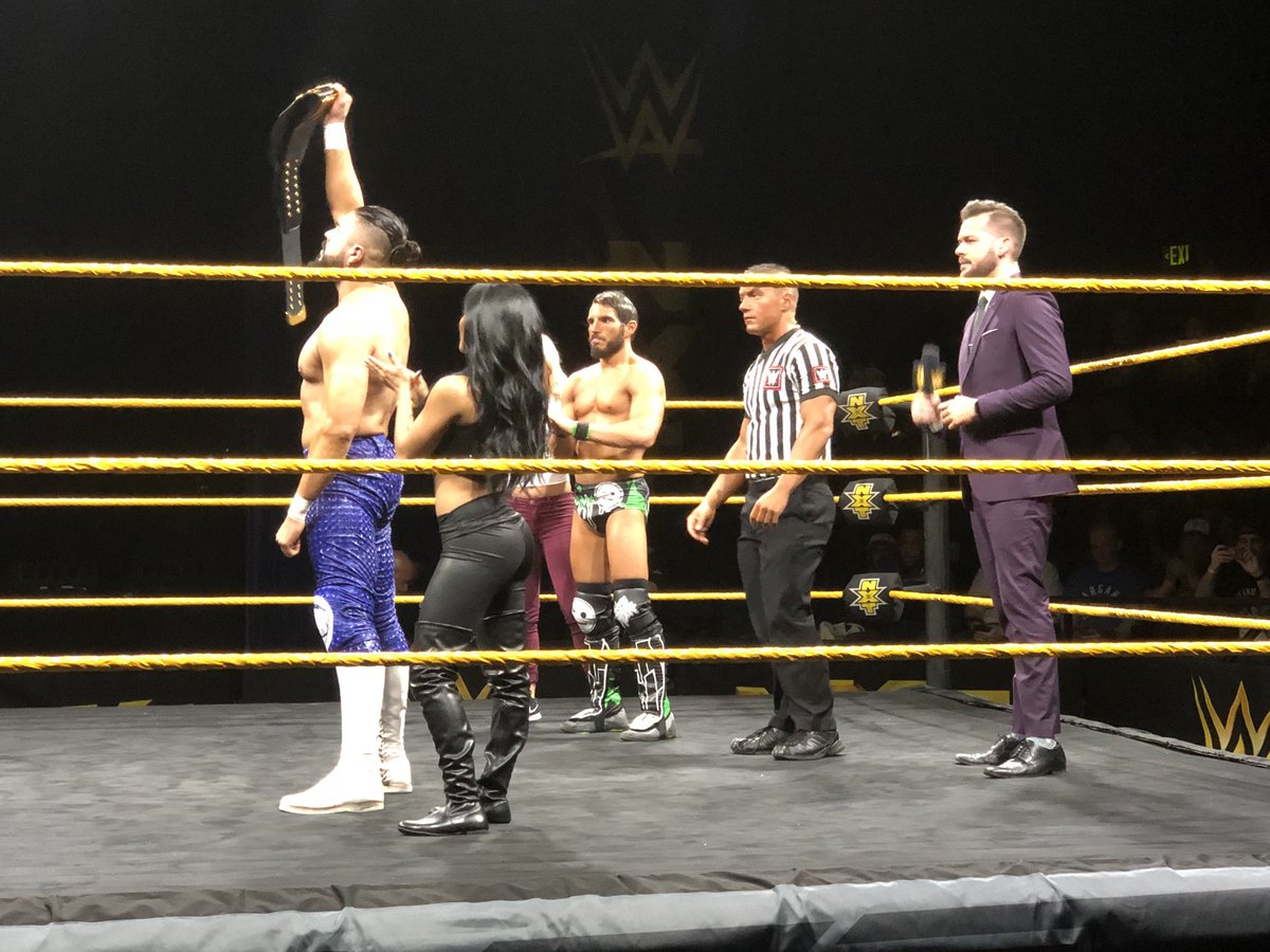 – NXT Champion Andrade “Cien” Almas (w/ Zelina Vega) defeated Johnny Gargano (w/ Candice LeRae) to retain his title