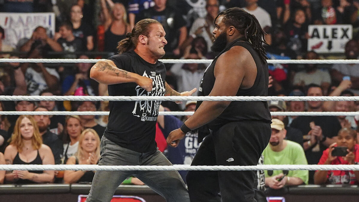 Jones, Kingston, and Woods were involved in a backstage segment later in the show. Kingston explained that he and Jones became friends at the Performance Center when Kingston was there rehabbing an injury. Woods seemed apprehensive about the situation.