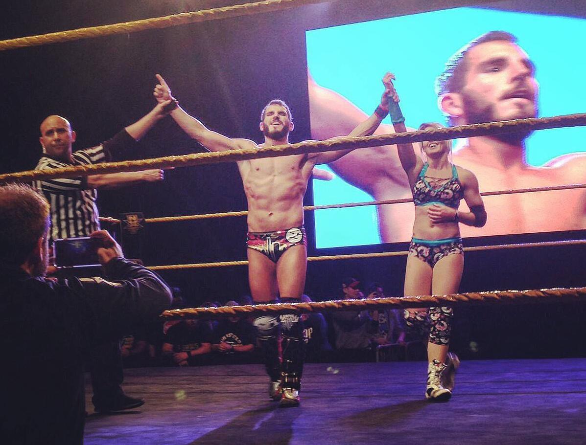 He thanked his parents (who were in attendance) for waiting hours in line to buy him tickets to WWE shows when he was a kid, painting Shawn Michaels on his wall, and always supporting him. He thanked Josh Prohibition (who was also in attendance) as well for training him.