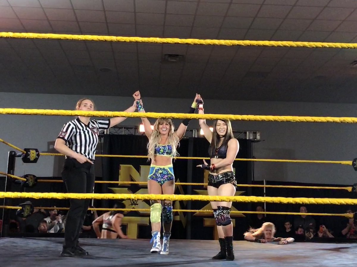 – Io Shirai & Candice LeRae defeated NXT Women’s Champion Shayna Baszler & Jessamyn Duke