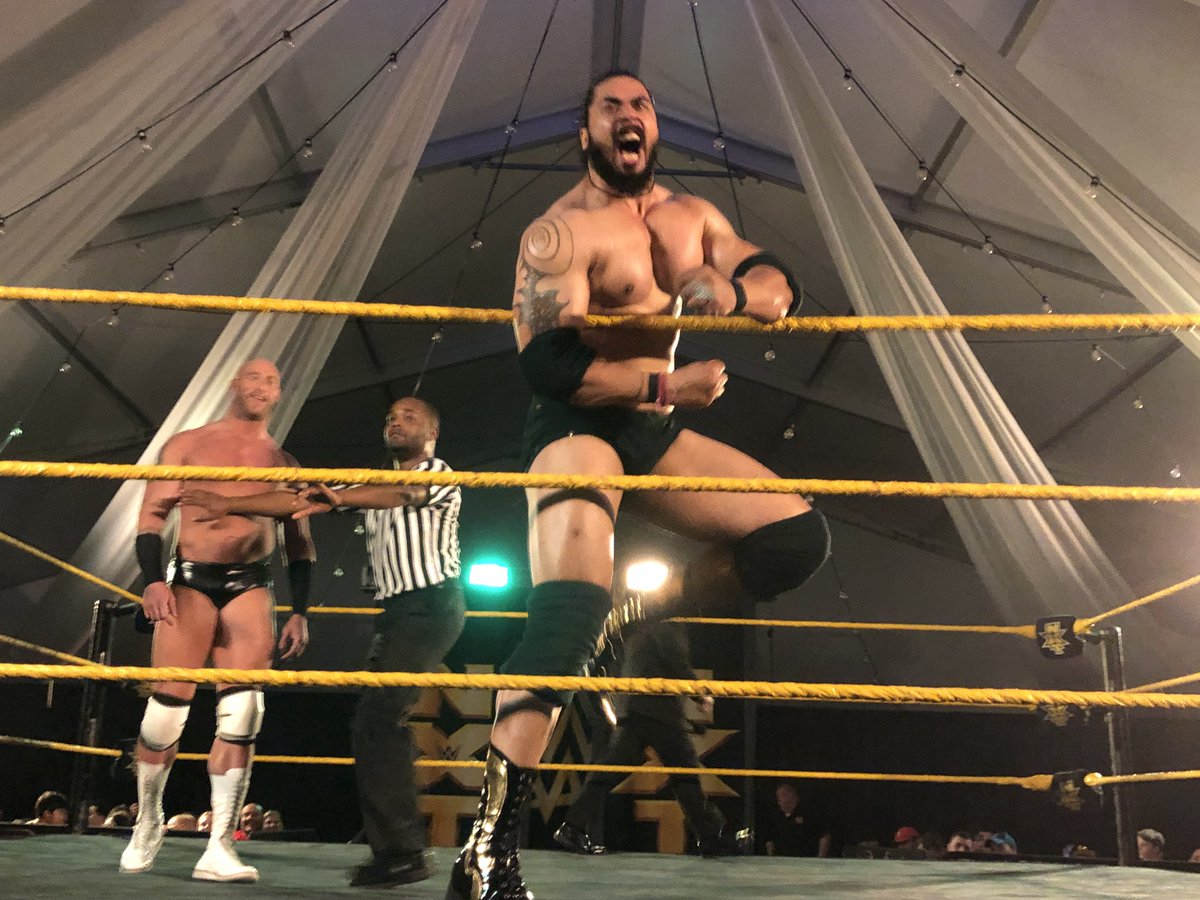 – There was an in-ring segment where Wesley Blake and Steve Cutler went back and forth with Dory Funk Jr. (who makes appearances when NXT comes to Ocala) before Babatunde Aiyegbusi showed up to fight.