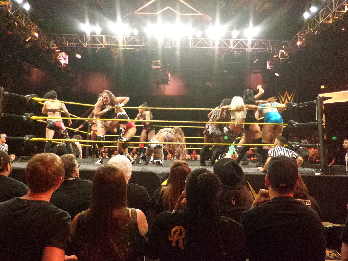 Asuka caused the no contest by destroying the final three. The participants in the match were: Candice LeRae, Rachael Ellering, Liv Morgan, Aliyah, Peyton Royce, Kimberly Frankele, Nikki Cross, Ruby Riot, Sarah Bridges, Victoria Gonzales, Bianca Blair, Billie Kay, Sonya Deville, and Lacey Evans. LeRae and Ellering got big reactions.