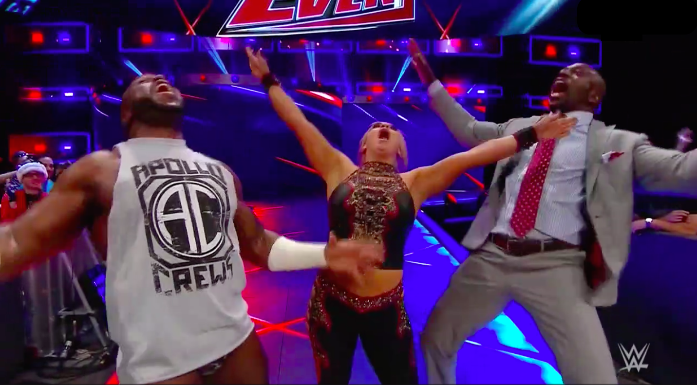 Dana Brooke (w/ Titus O’Neil and Apollo Crews) defeated Mickie James (4:37)