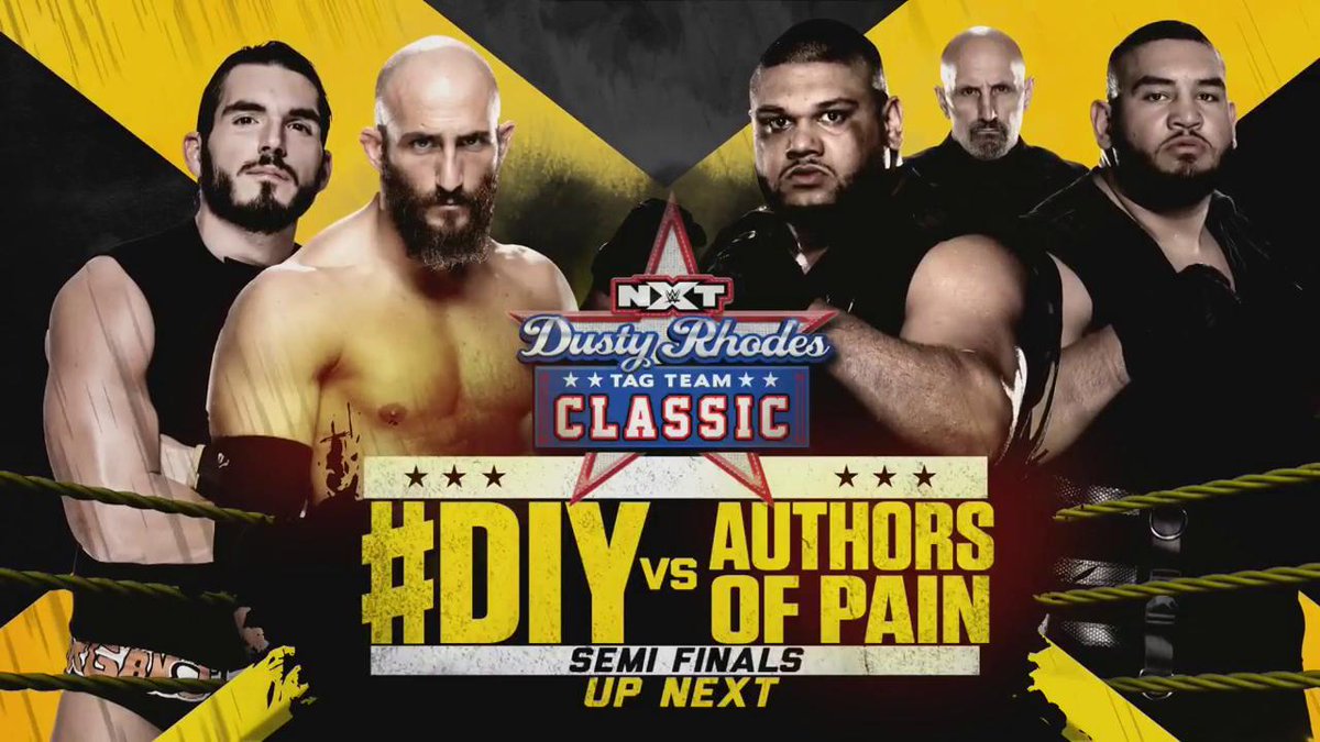 The Authors of Pain defeated DIY (Johnny Gargano & Tommaso Ciampa) in a Dusty Classic semifinal match