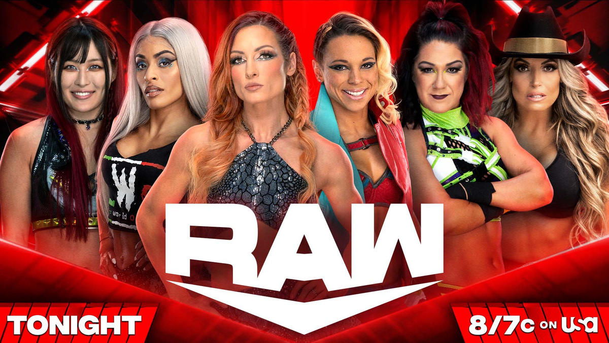 (Trish Stratus and Zoey Stark entered before a break, Becky Lynch entered after the break. Bayley, IYO SKY and Zelina Vega entered during the break.)