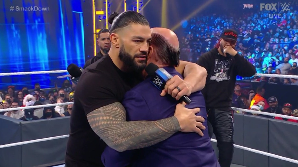 Reigns hugged Heyman, told him that he loved him, thanked him for 40 years of service to his family, then told Heyman “You’re fired.”