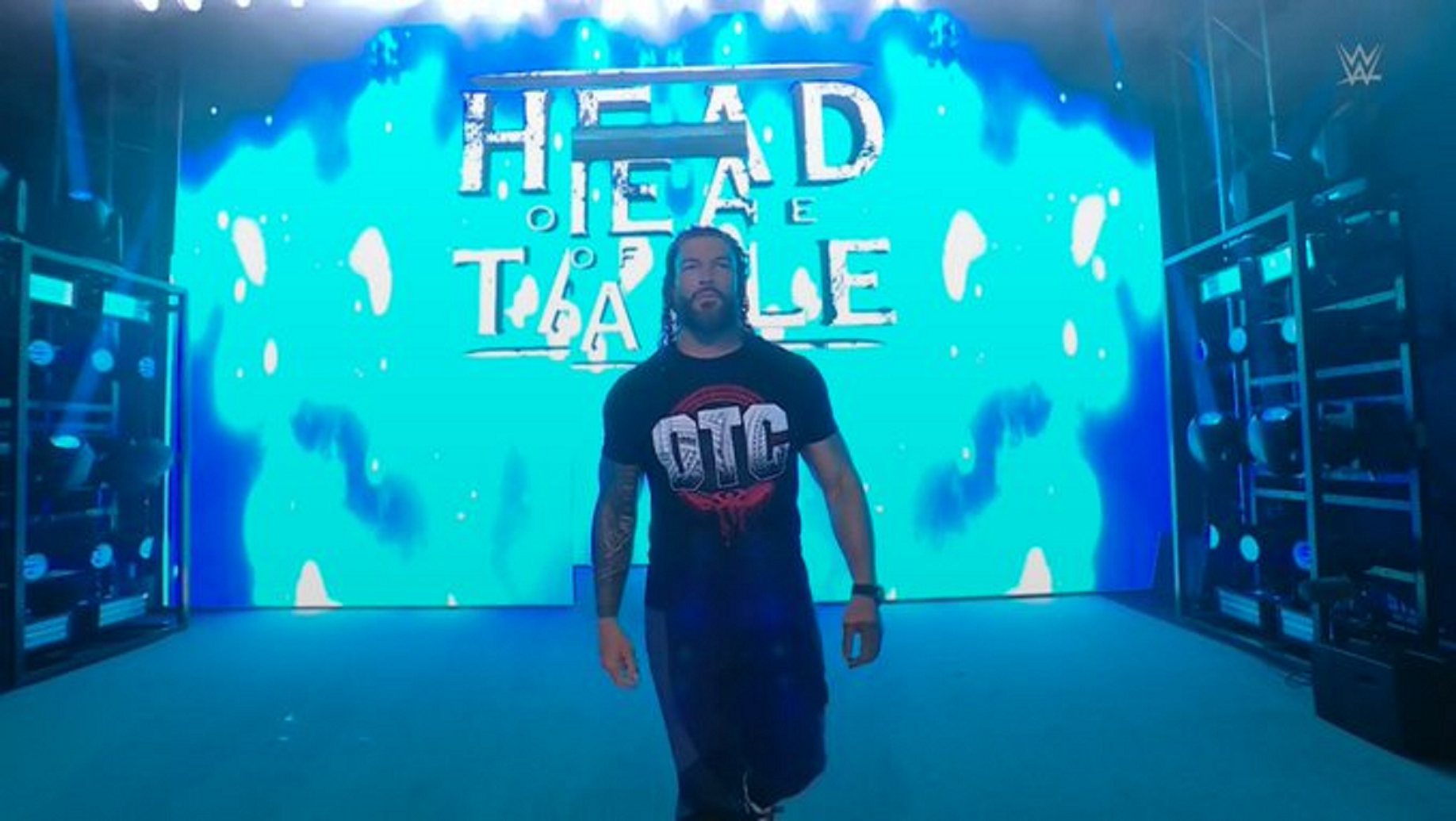 Reigns wore a shirt with “OTC” on the chest, a reference to his status as the Original Tribal Chief.