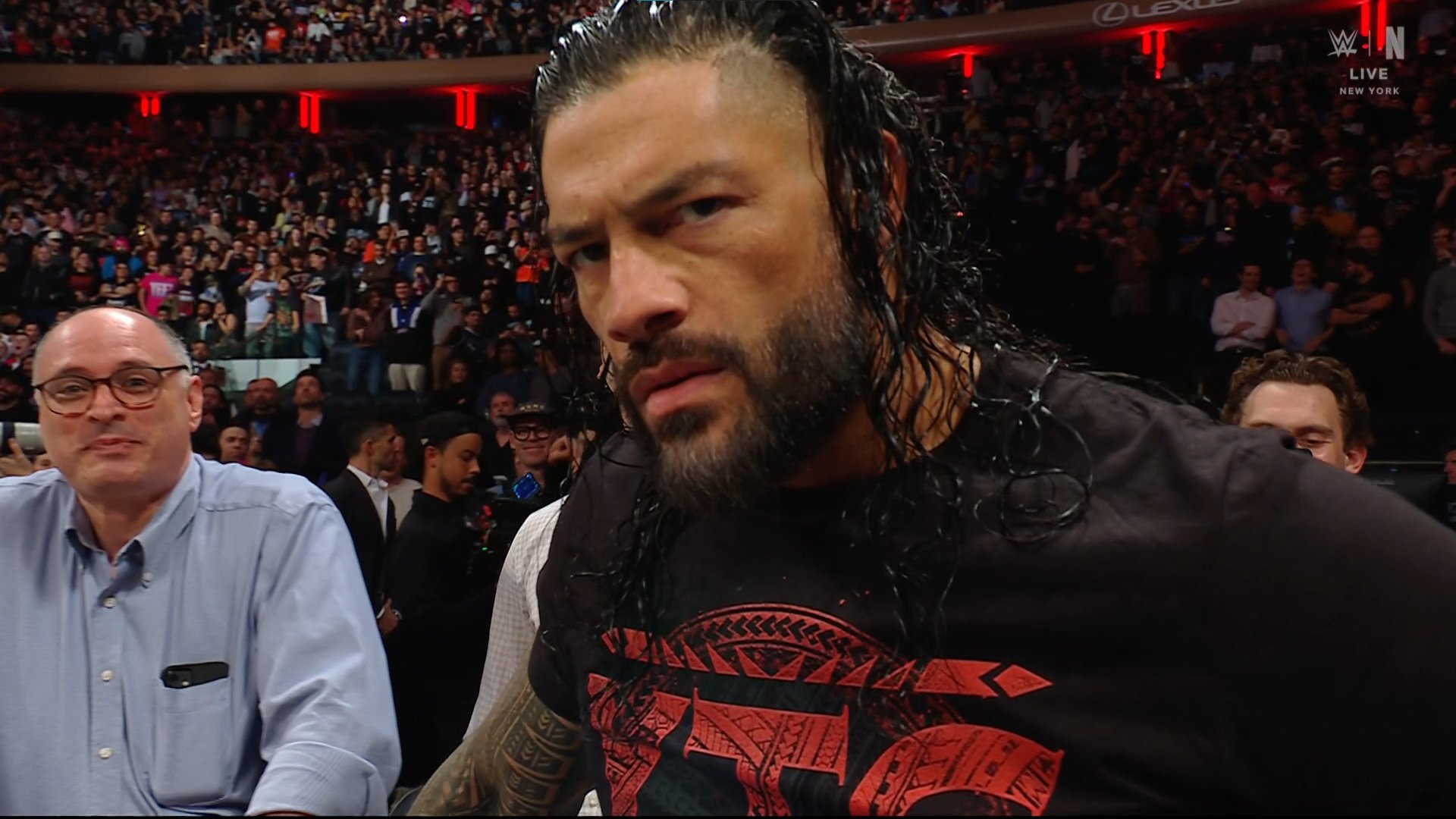 Roman Reigns isn’t pleased with anyone.