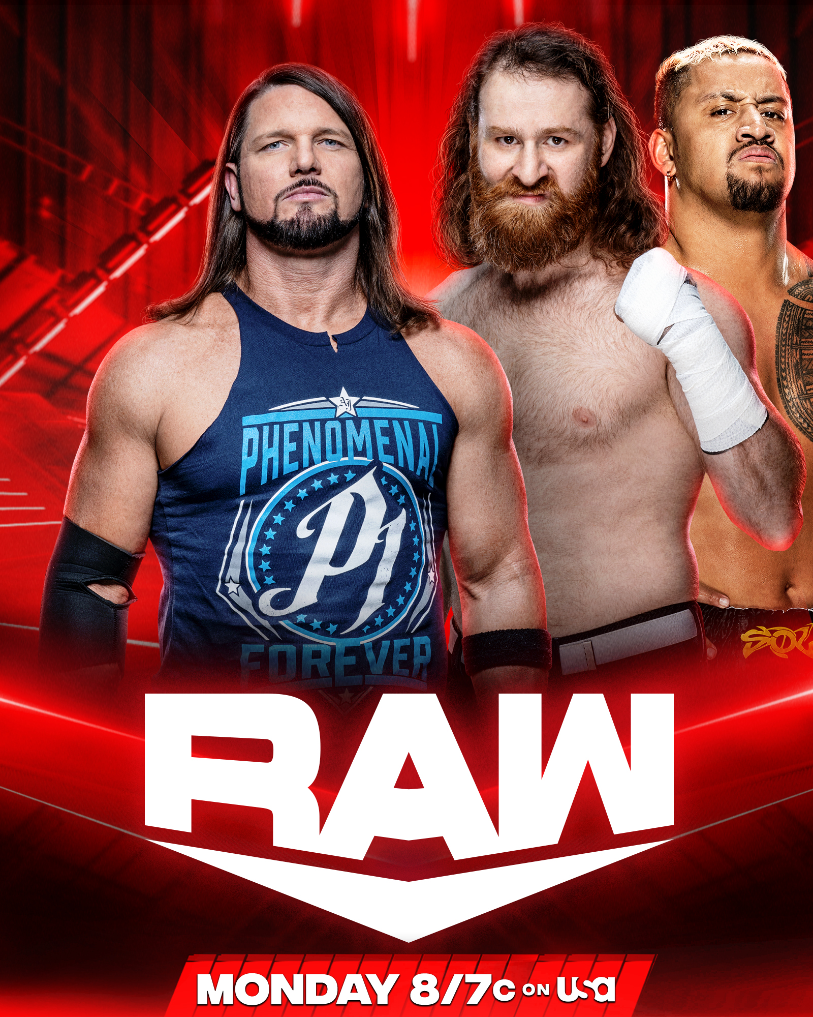Sami Zayn will face AJ Styles in singles action on WWE Raw.